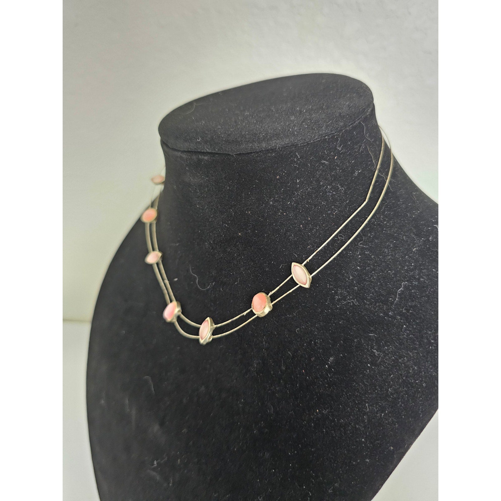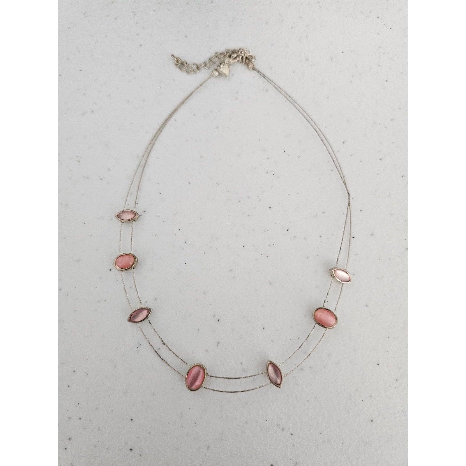 Vintage Y2K Multi Wire Necklace Inlay Light Pink Stones Dainty