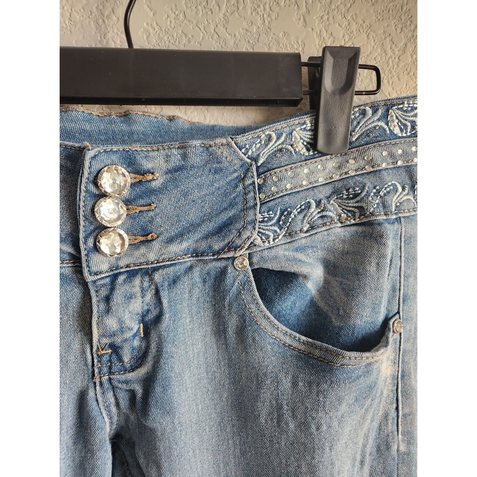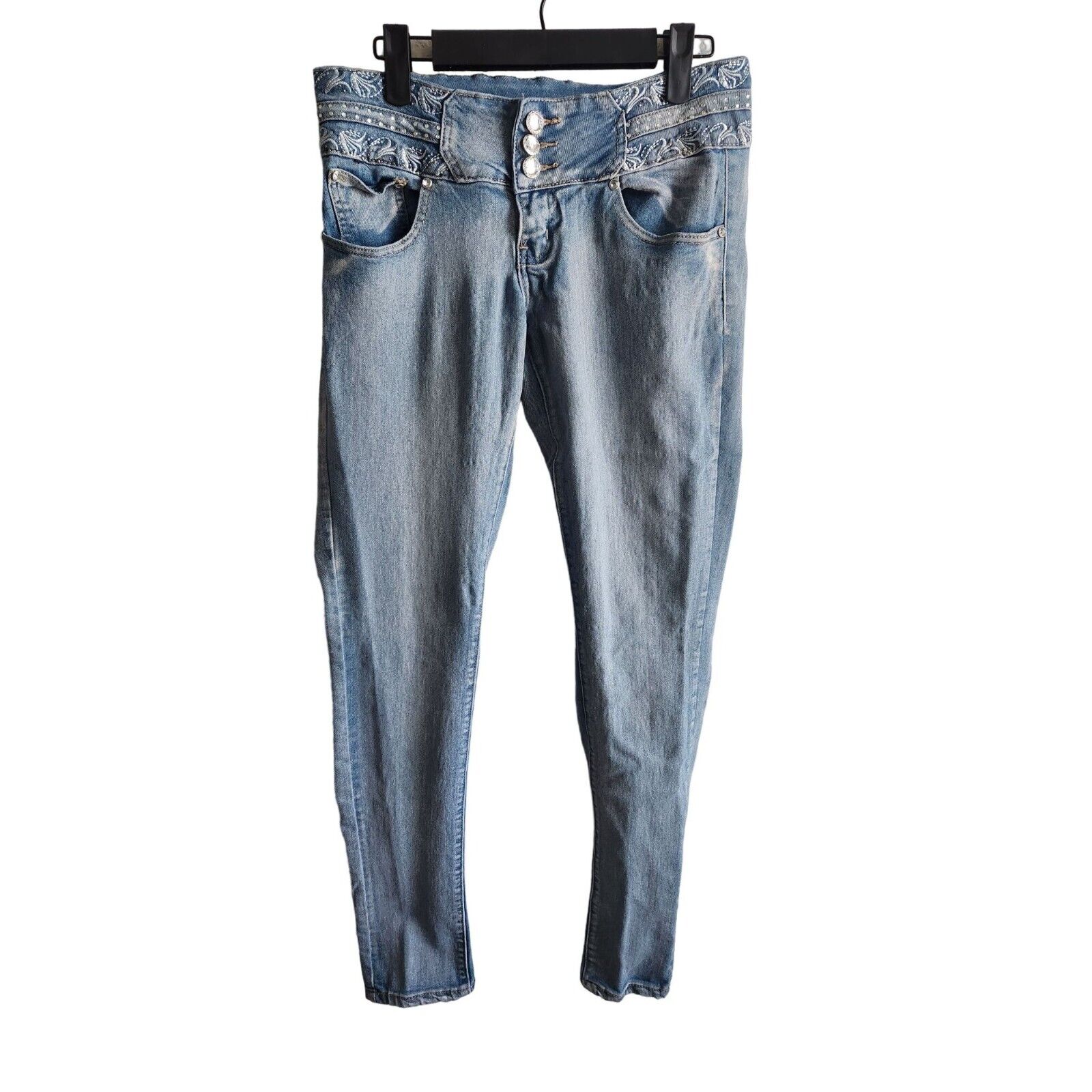 Vintage Y2K Para Juniors Sz 7 Light Wash Skinny Jeans Embroidered Top