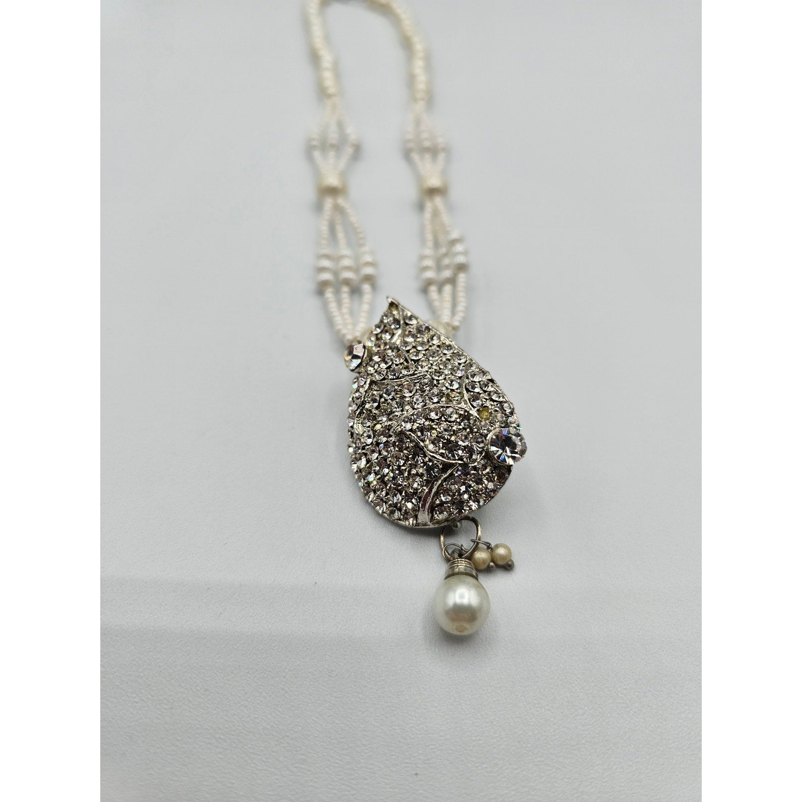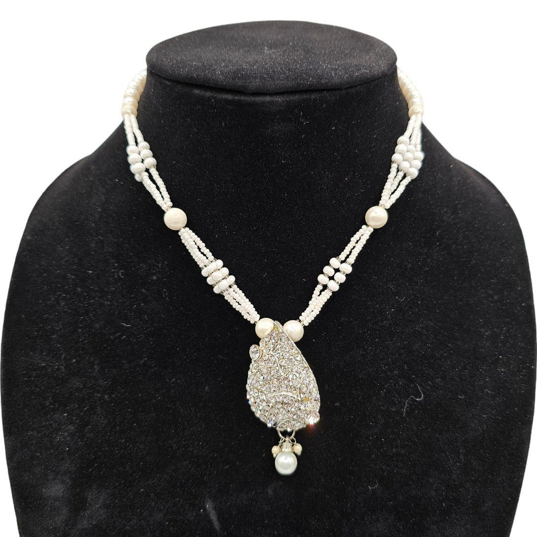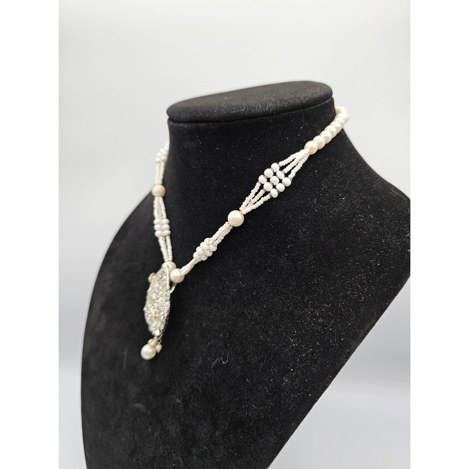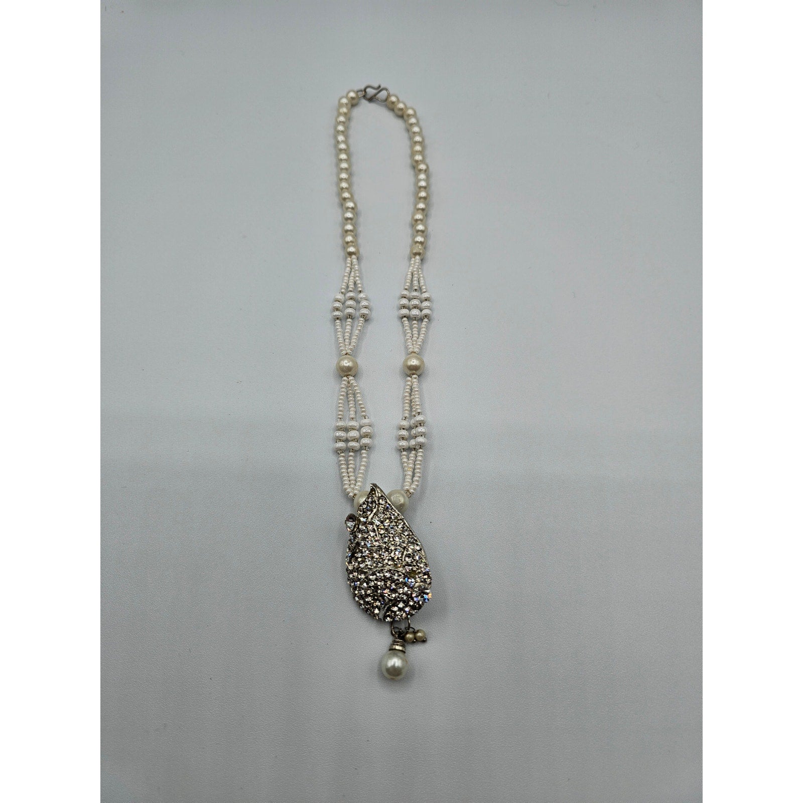 Vintage Y2K Pendant Style Necklace Pearl Beaded Rhinestone Pendant Elegant