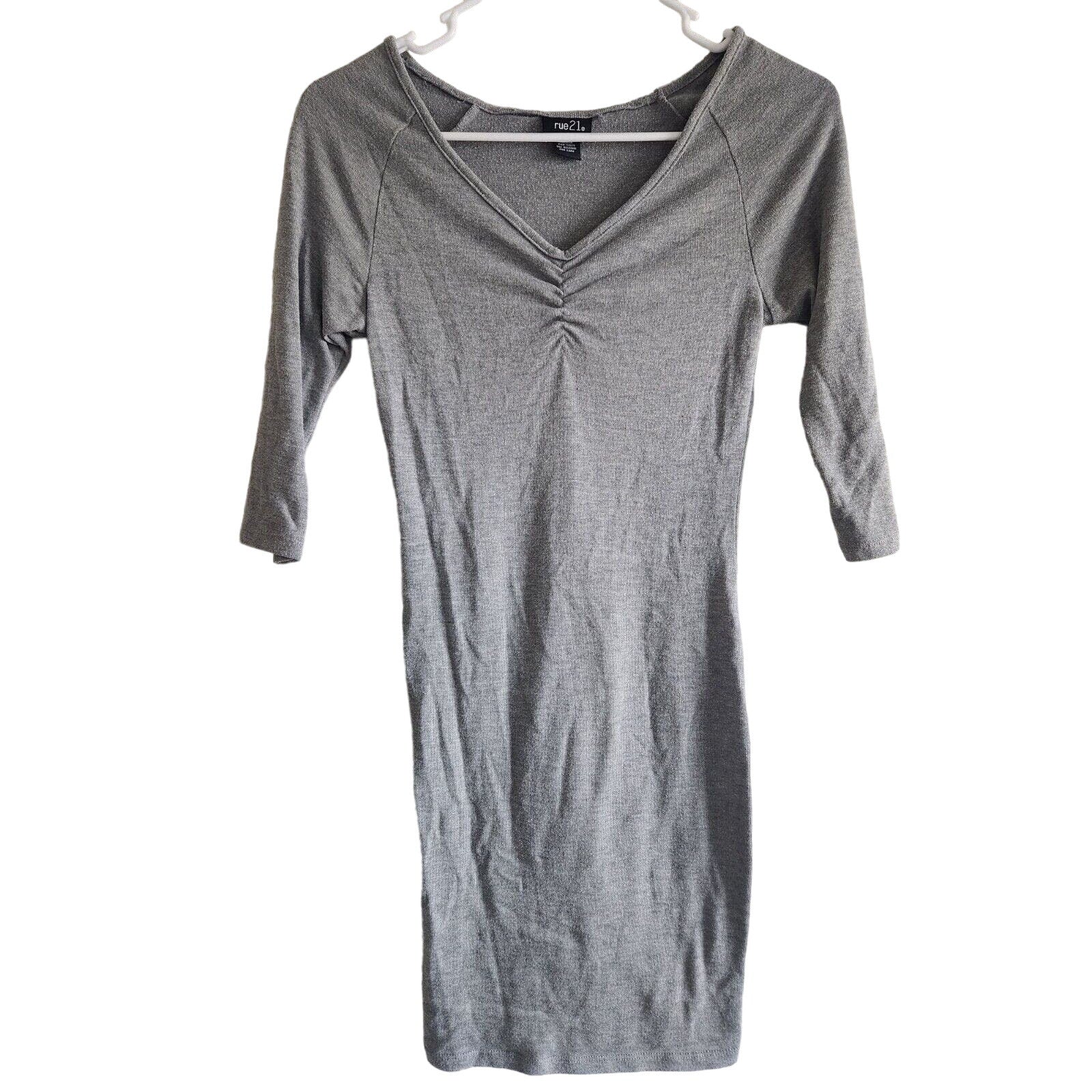 Vintage Y2K Rue 21 Womens Sz XS Gray Fitted Dress V Neck Mini Short