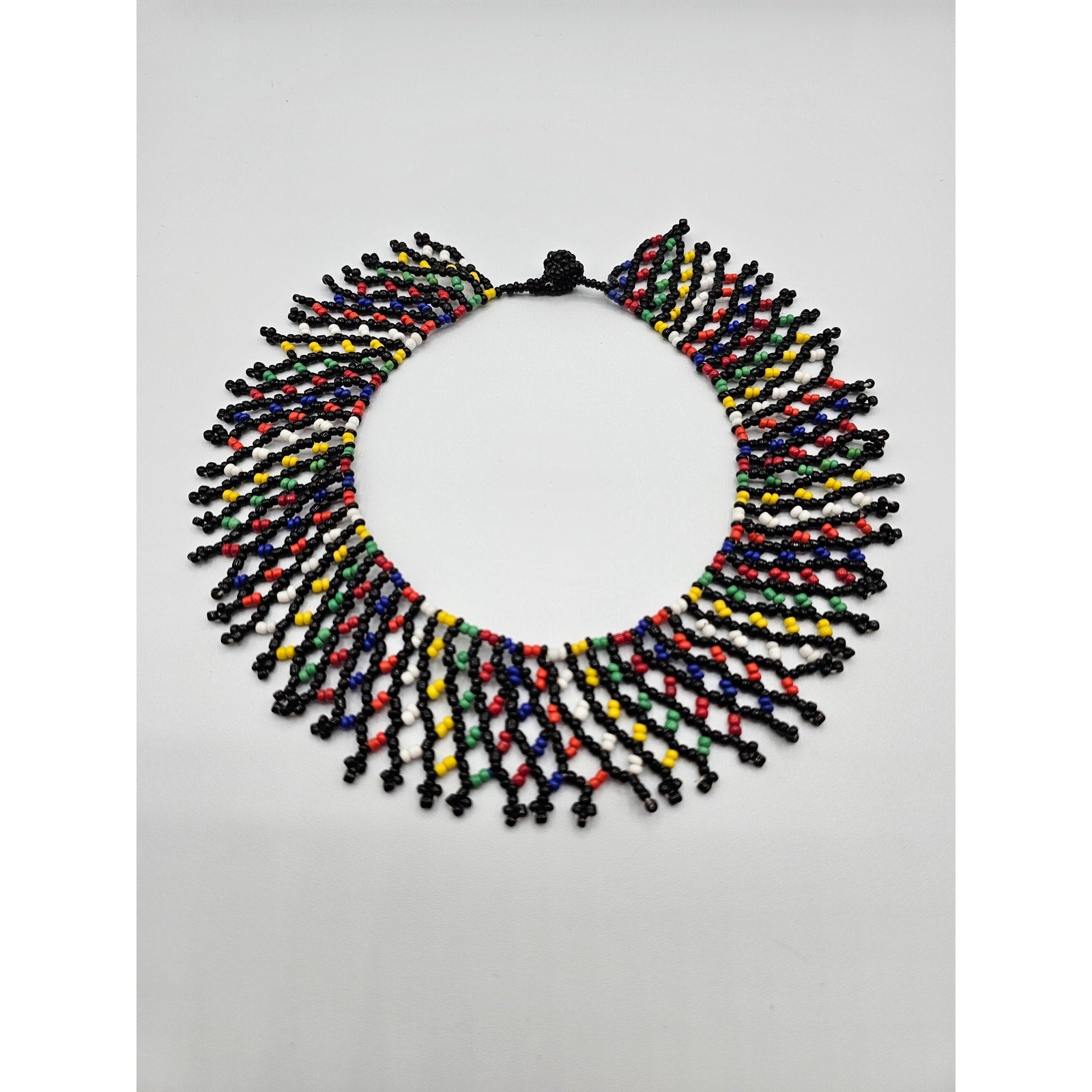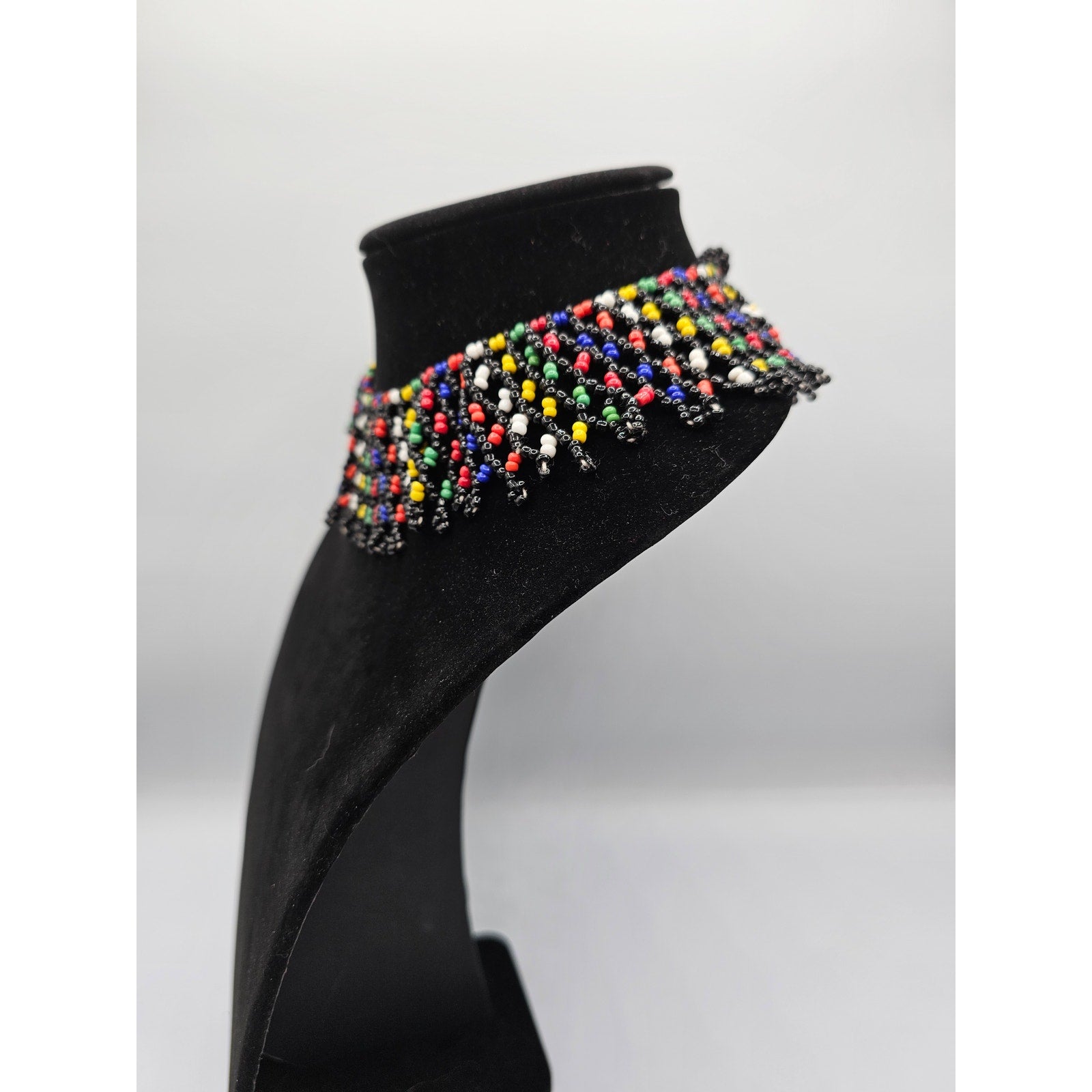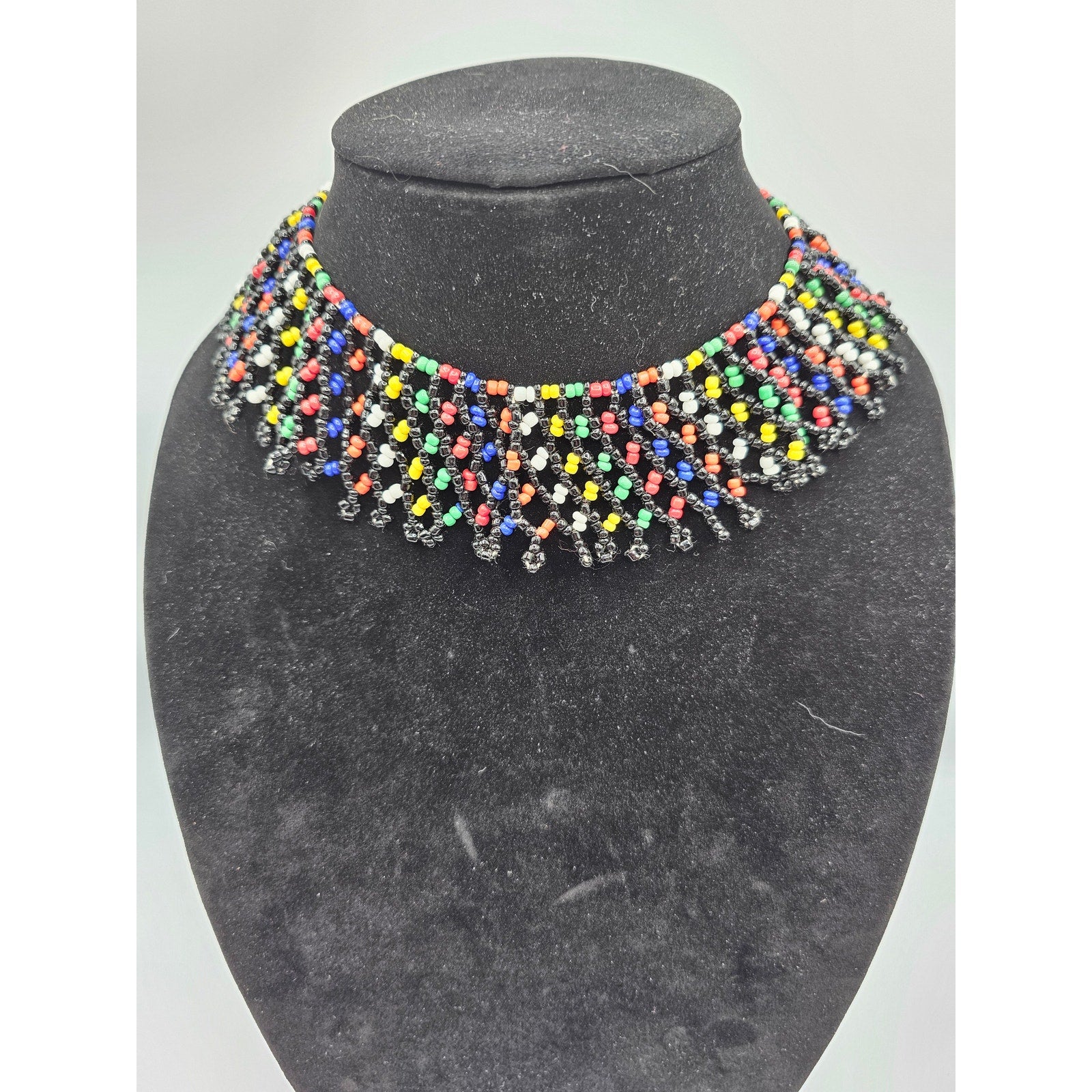 Vintage Y2k Seed Bead Bib Style Necklace Rainbow Pride