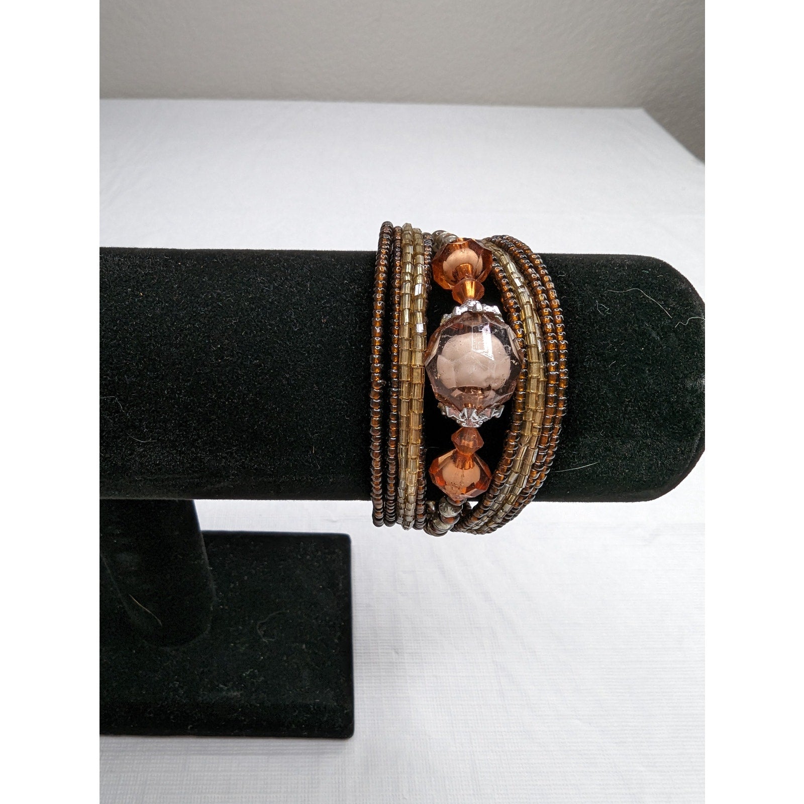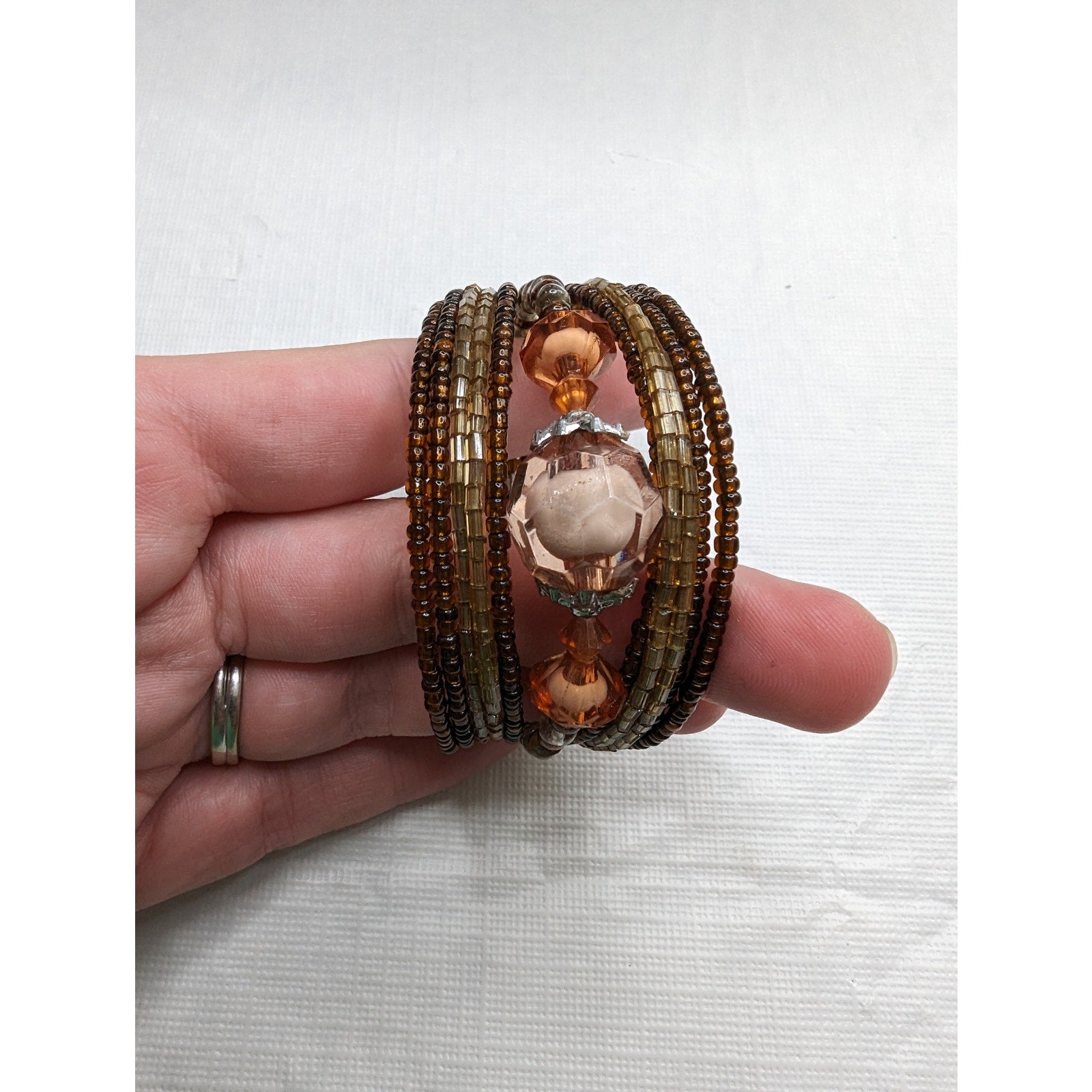 Vintage Y2K Seed Bead Stacked Layered Adjustable Bracelet Gold Tones