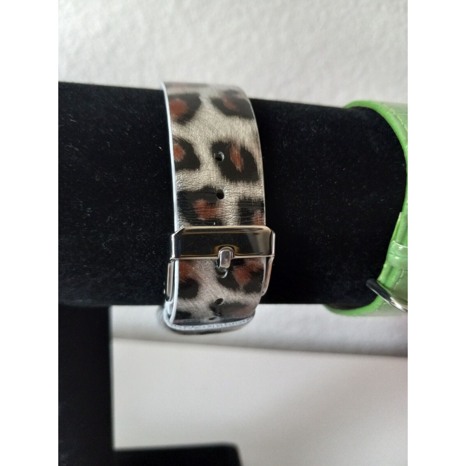 Vintage Y2K Set of 4 Faux Leather Cuffs Bracelets Cheetah Lime Green Purple