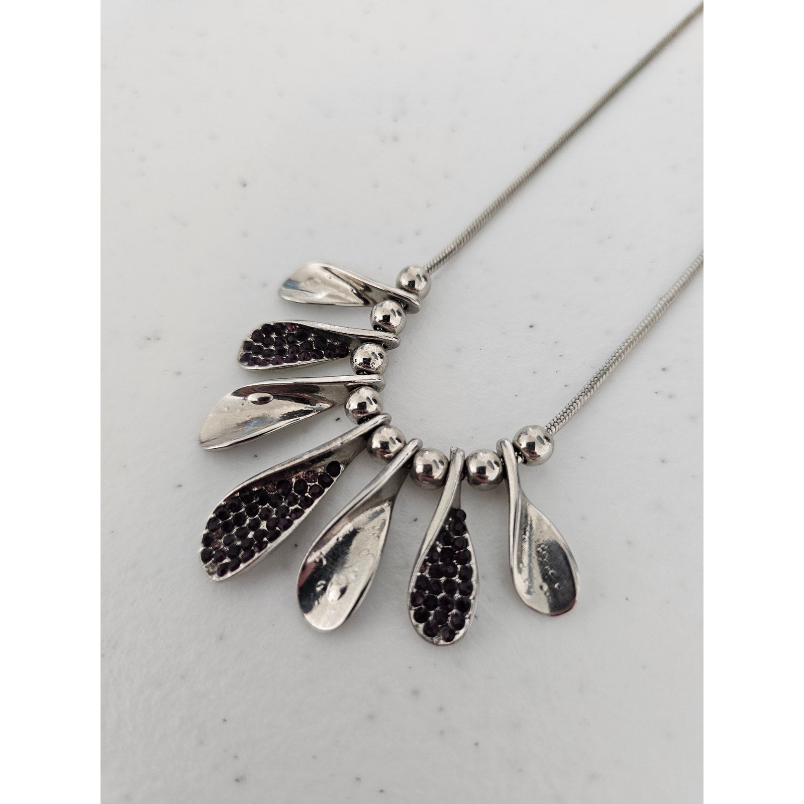 Vintage Y2K Silver and Purple Rhinestone Necklace Beaded