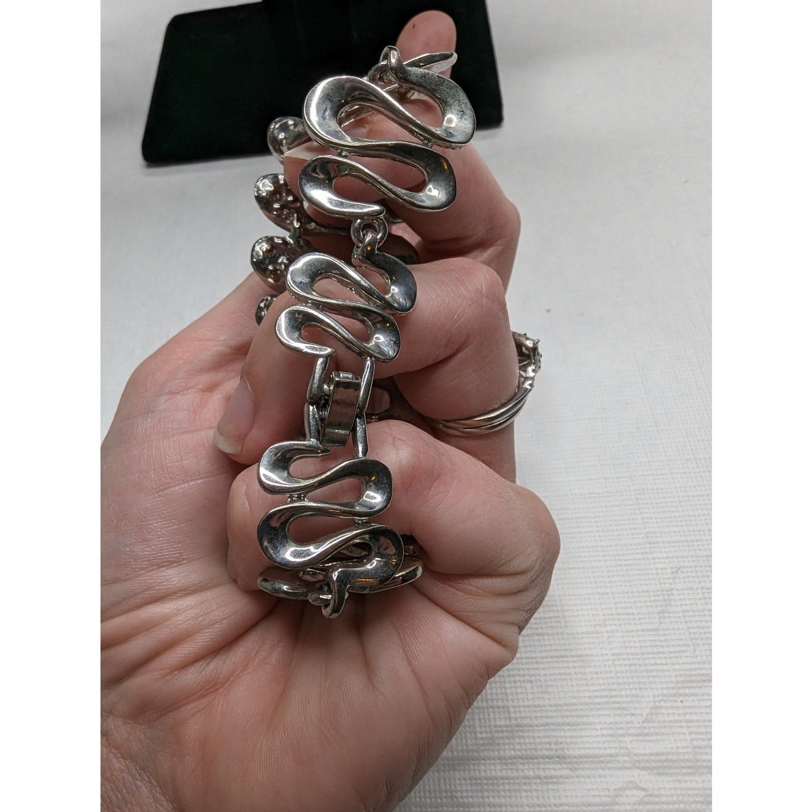 Vintage Y2K Silver and Rhinestone Bangle Bracelet Wide