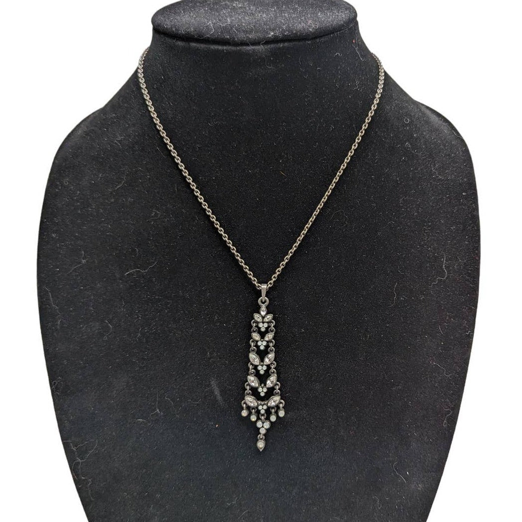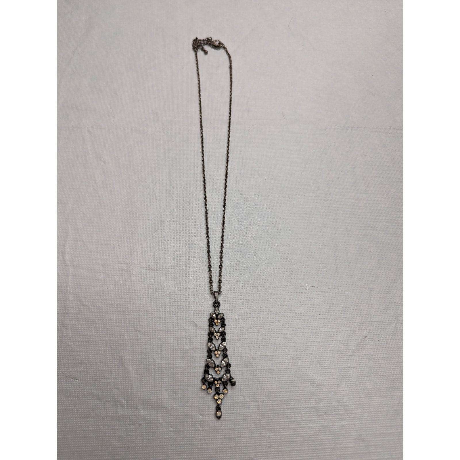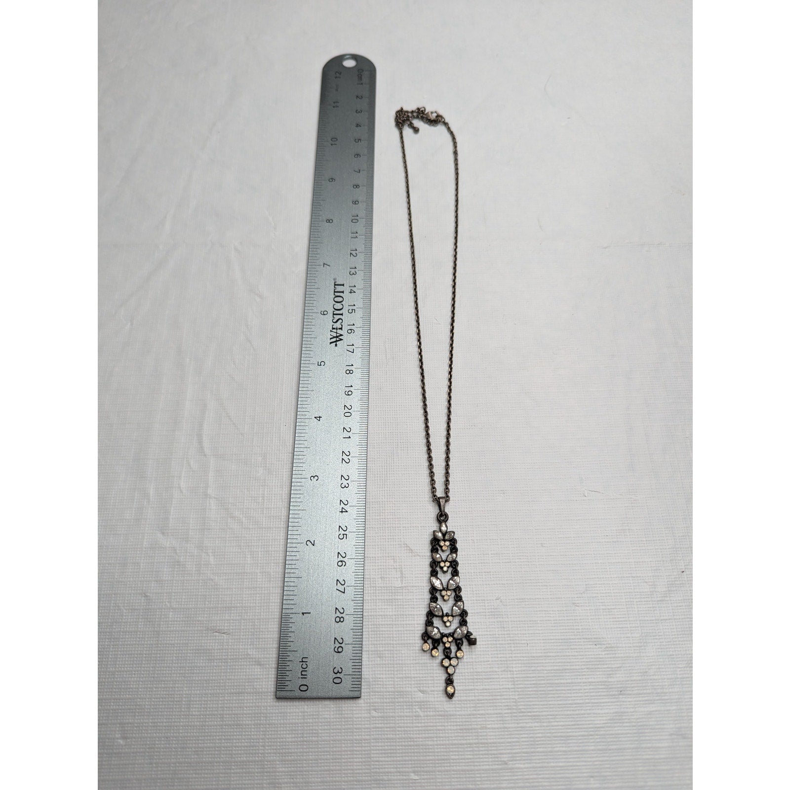 Vintage Y2K Silvertone and Rhinestone Pendant Necklace