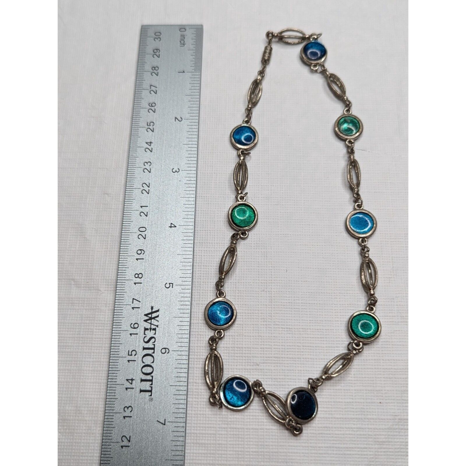 Vintage Y2K Silvertone Chain Necklace Blue Green Round Stones