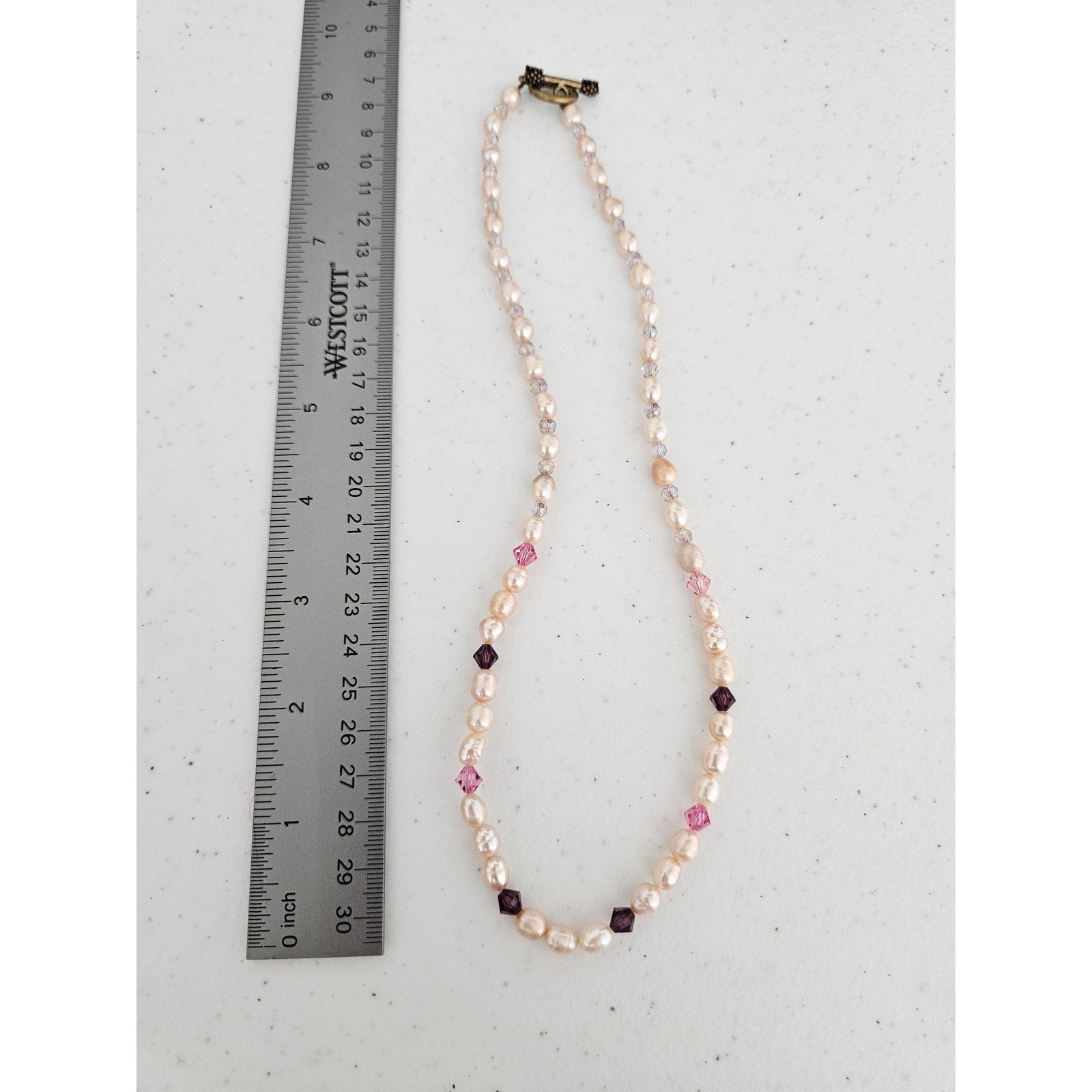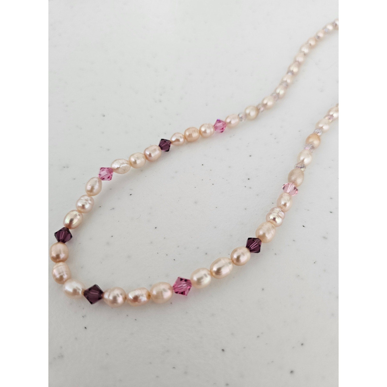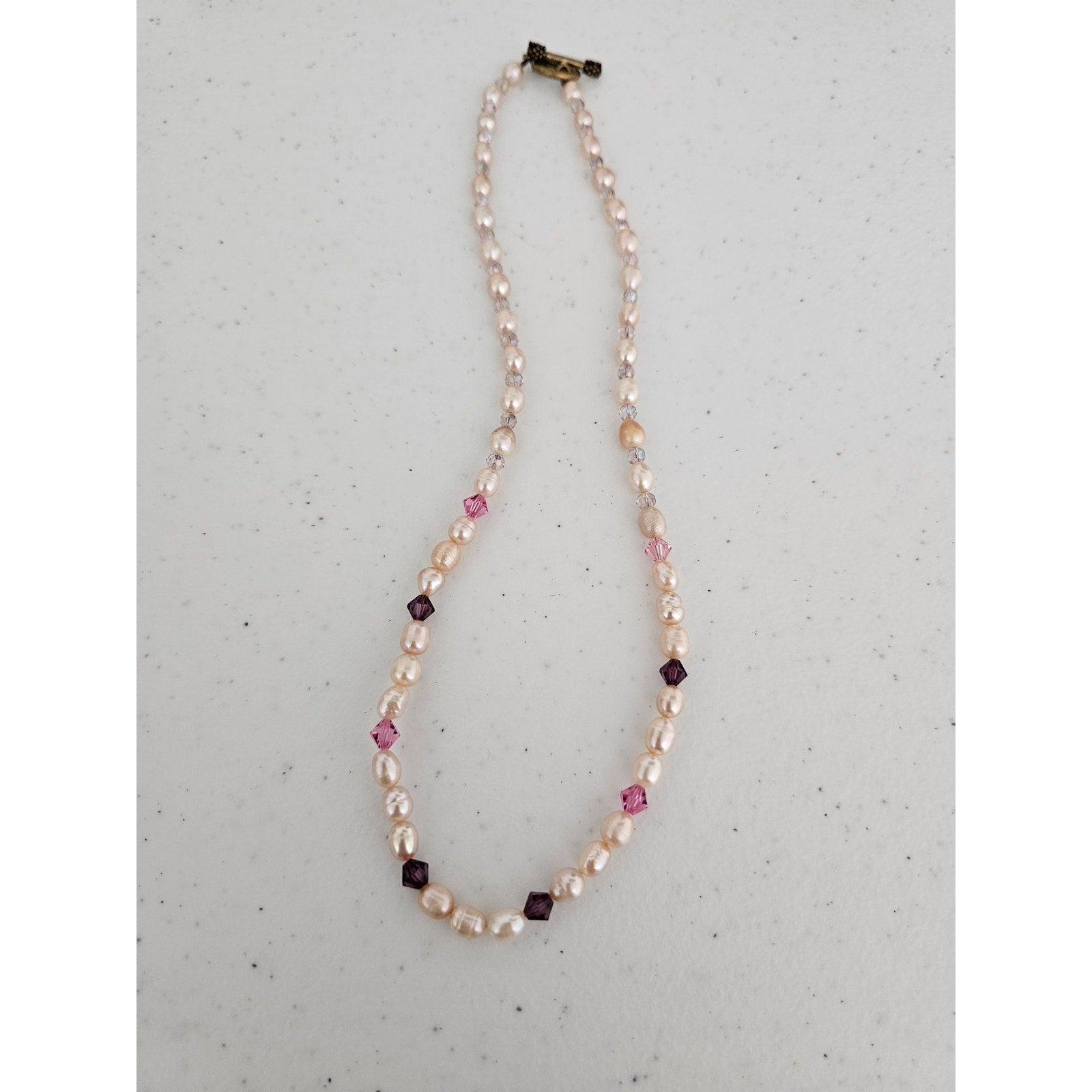 Vintage Y2K Single Strand Beaded Necklace Faux Pearl With Rhinestones Dainty