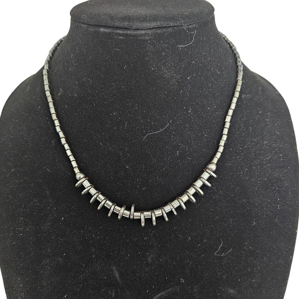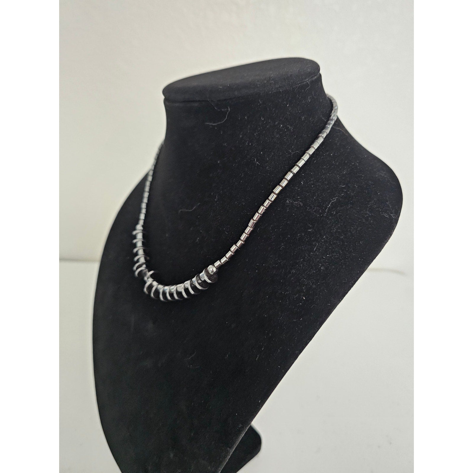 Vintage Y2K Single Strand Metal Beaded Necklace Silver Tone