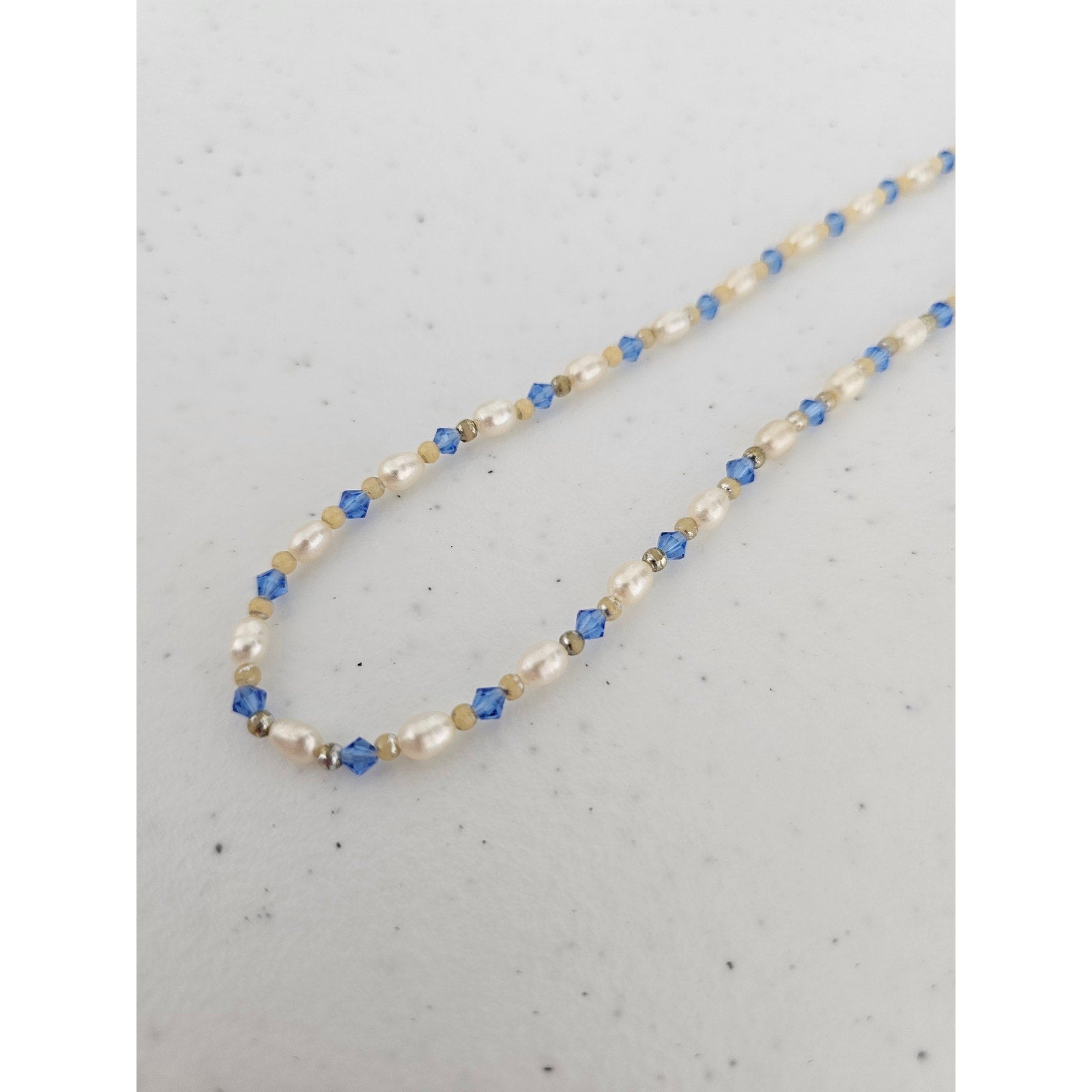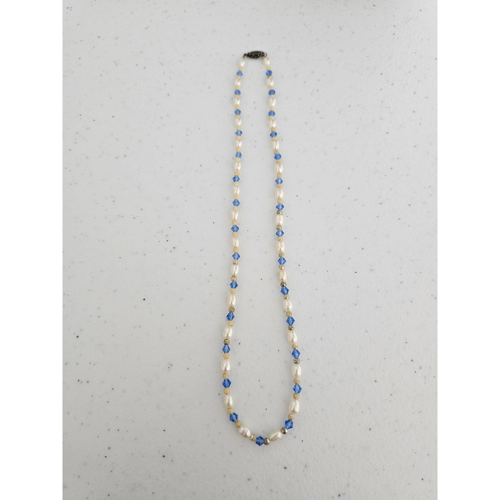 Vintage Y2K Single Strand Necklace Freshwater Pearl and Blue Rhinestones