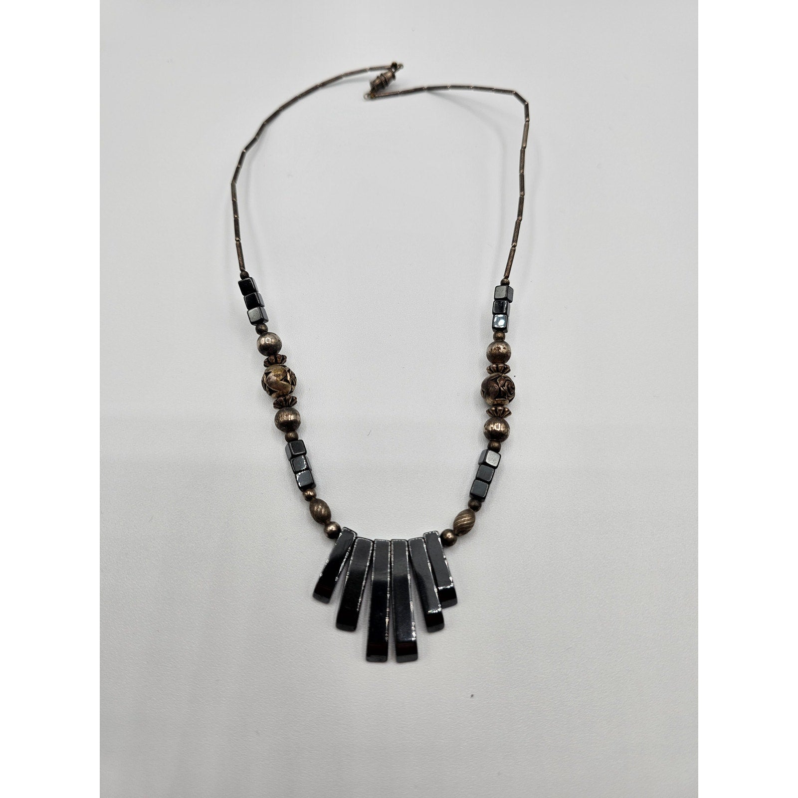 Vintage Y2K Single Strand Necklace Silver Tone Beads Statement Piece