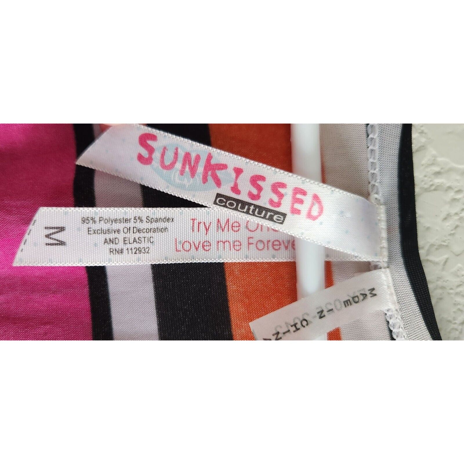 Vintage Y2K Sunkissed Couture Womens Sz M Knee Length Dress Rainbow Striped