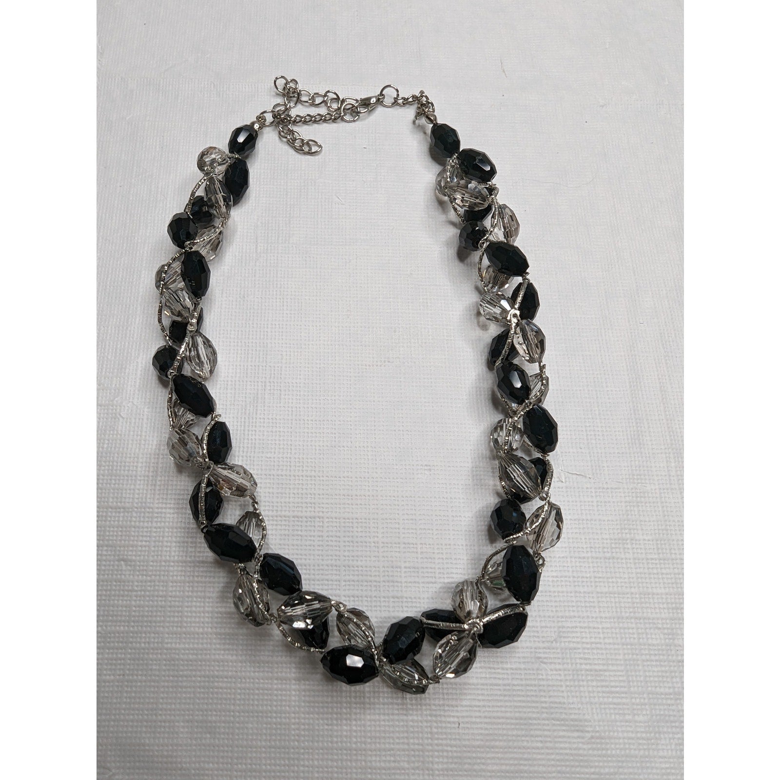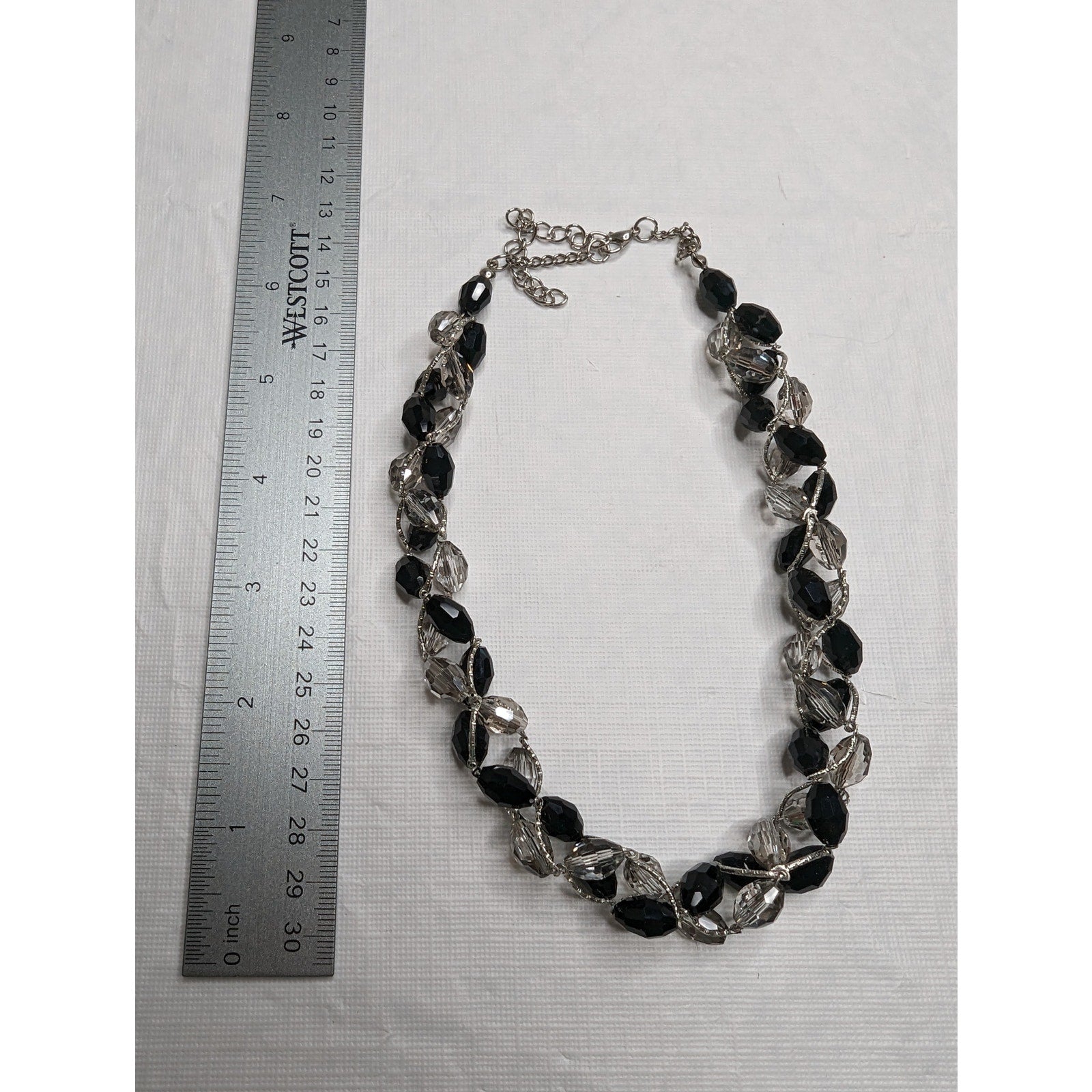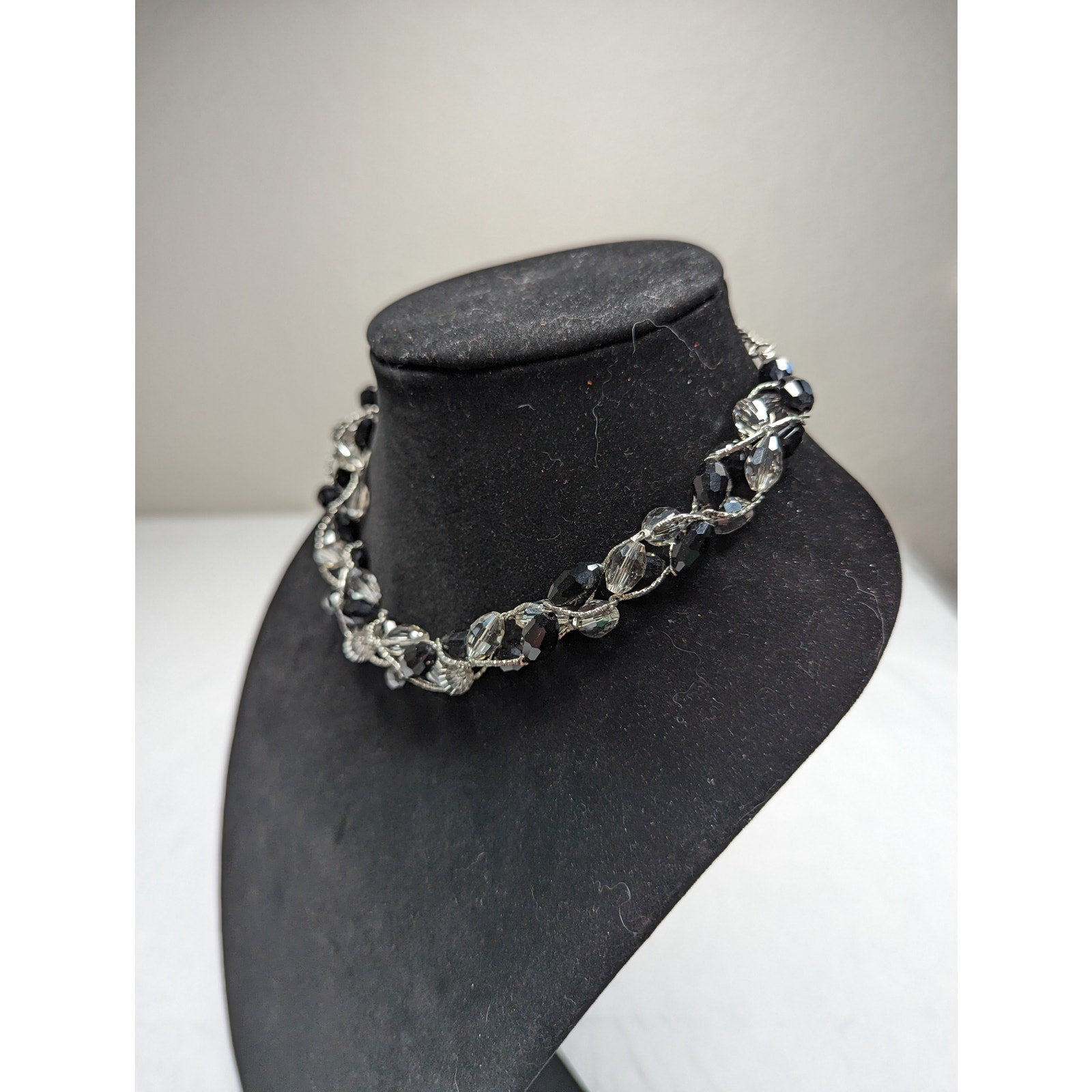 Vintage Y2K Womens Beaded Choker Necklace Black Clear Braided Beads