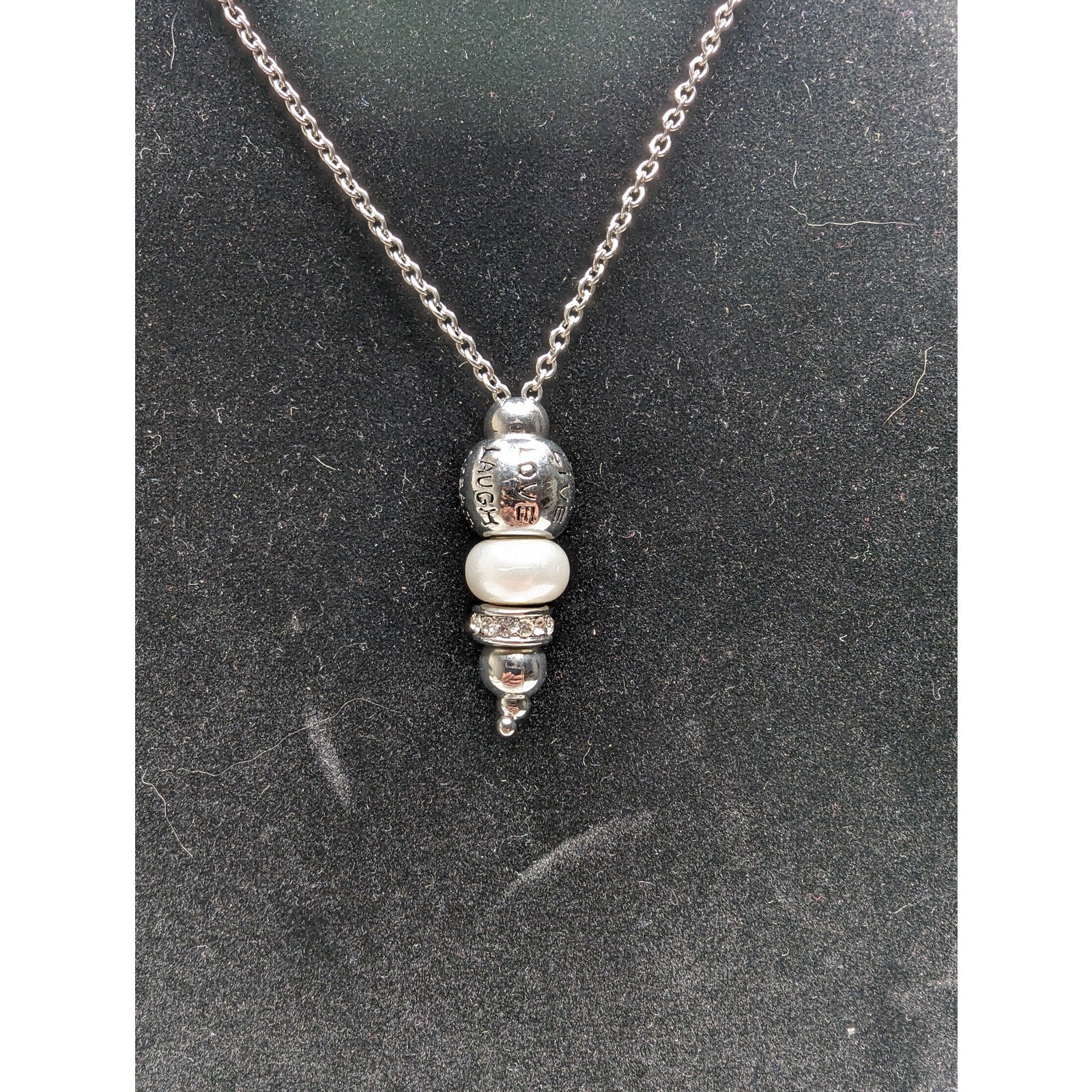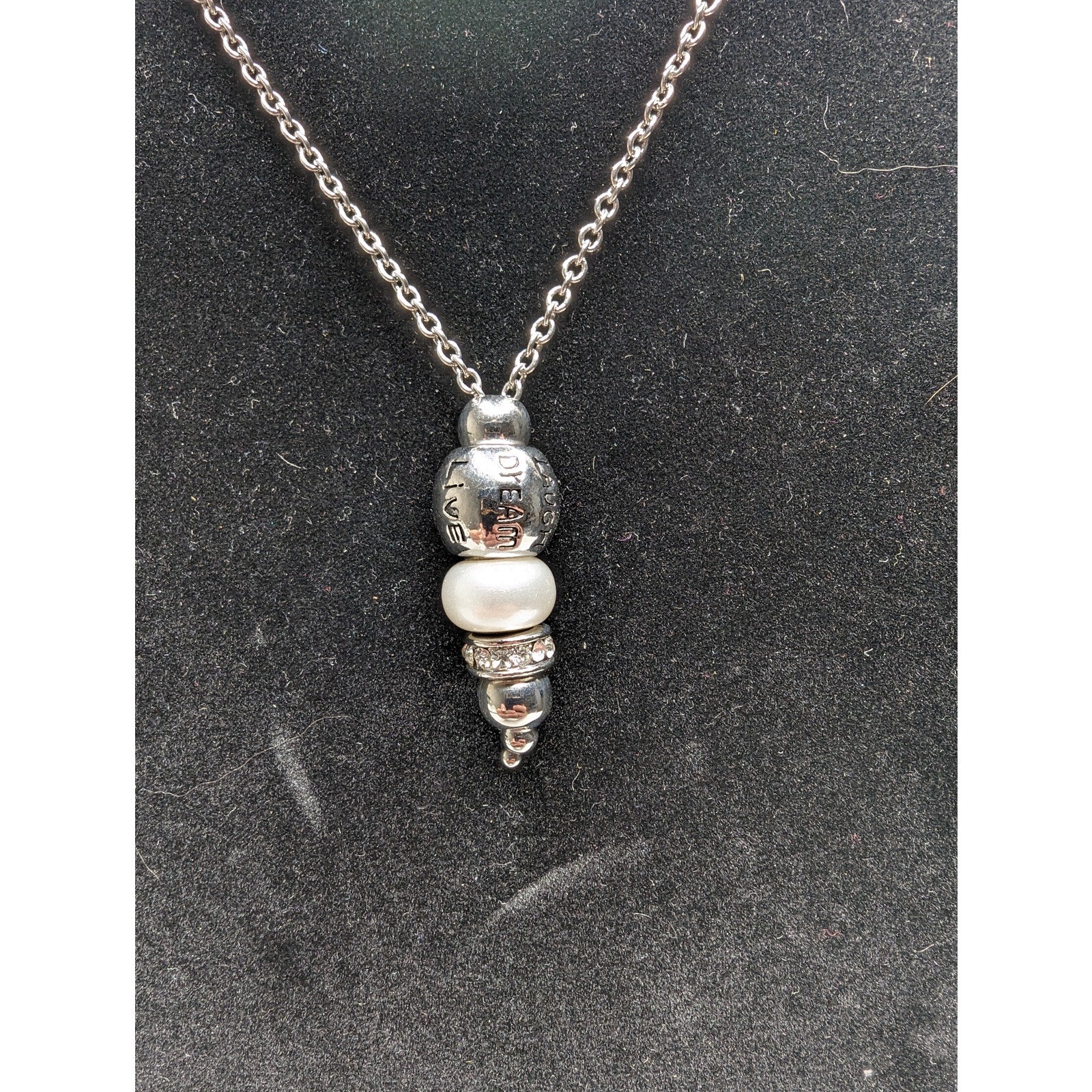 Vintage Y2K Womens Silvertone Necklace Live laugh Love Dream Pendant
