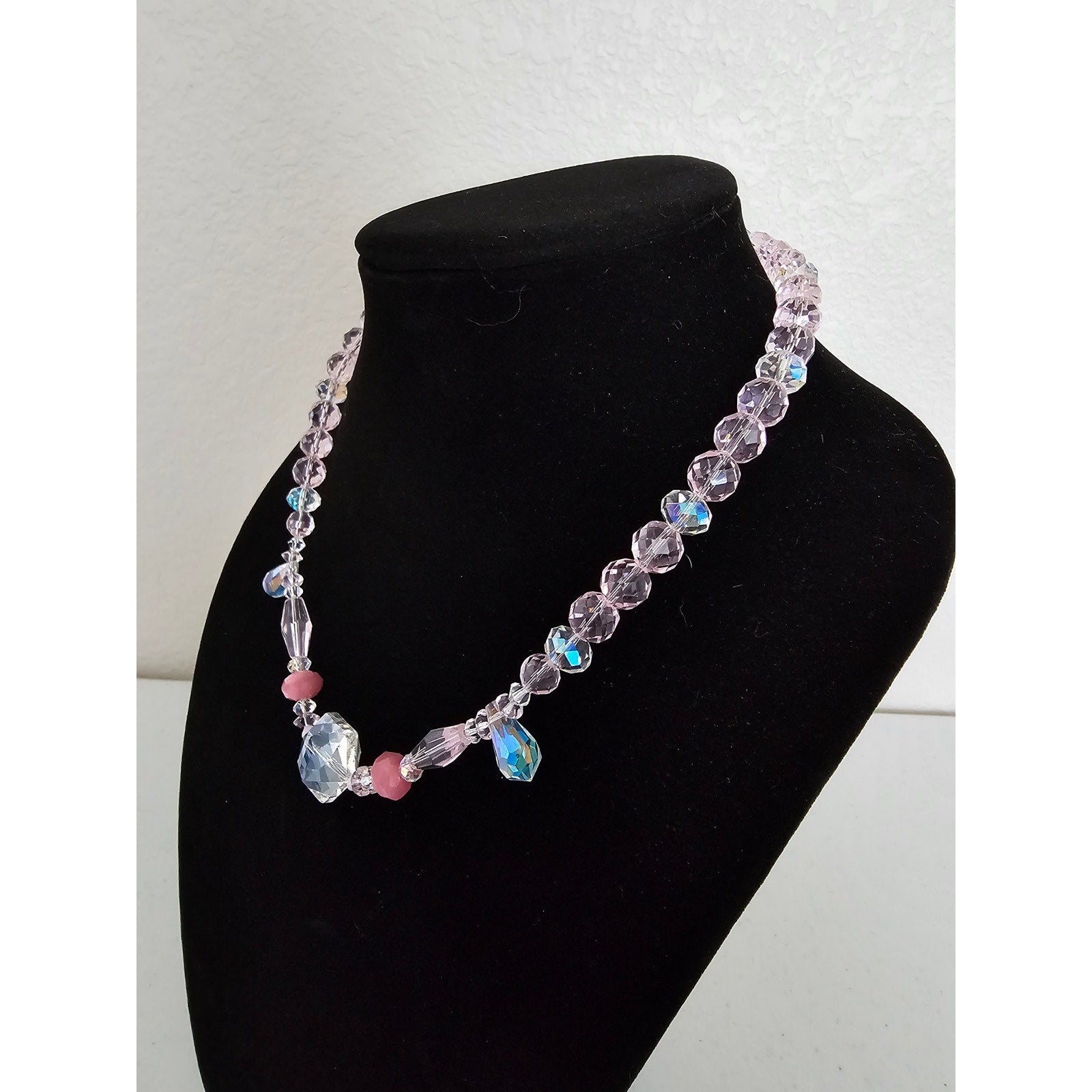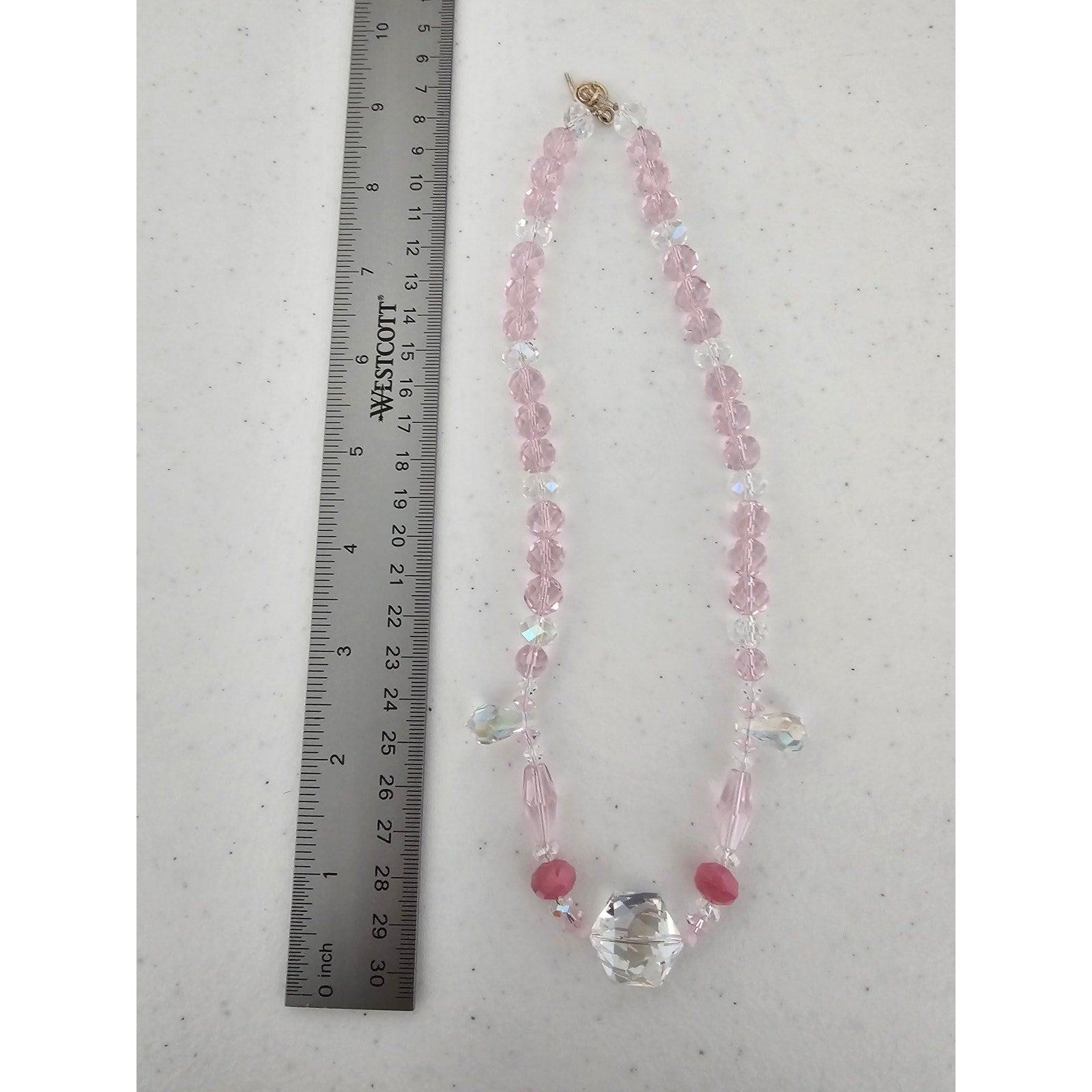 Vintage Y2K Womens Single Strand Necklace Clear Rhinestone Pink Preppy