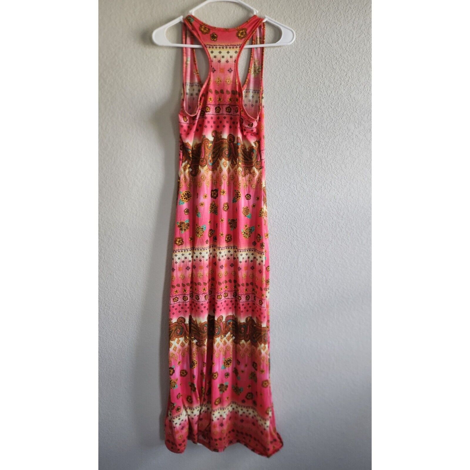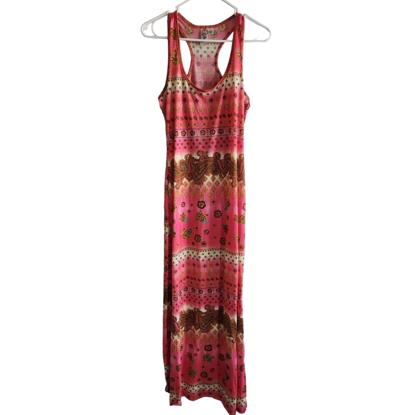 Vintage Y2K Womens Sz L Racerback Maxi Dress Pink Paisley Print