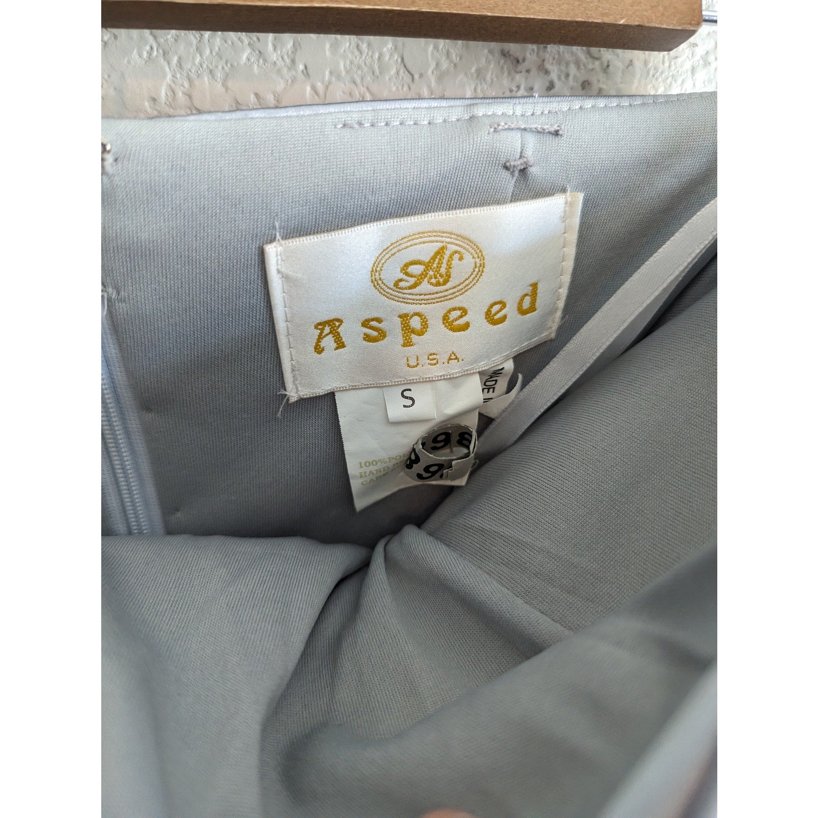 Vintage Y2K Womens Sz S Aspeed Formal Dress Ice Blue Silver Satin Strapless Maxi