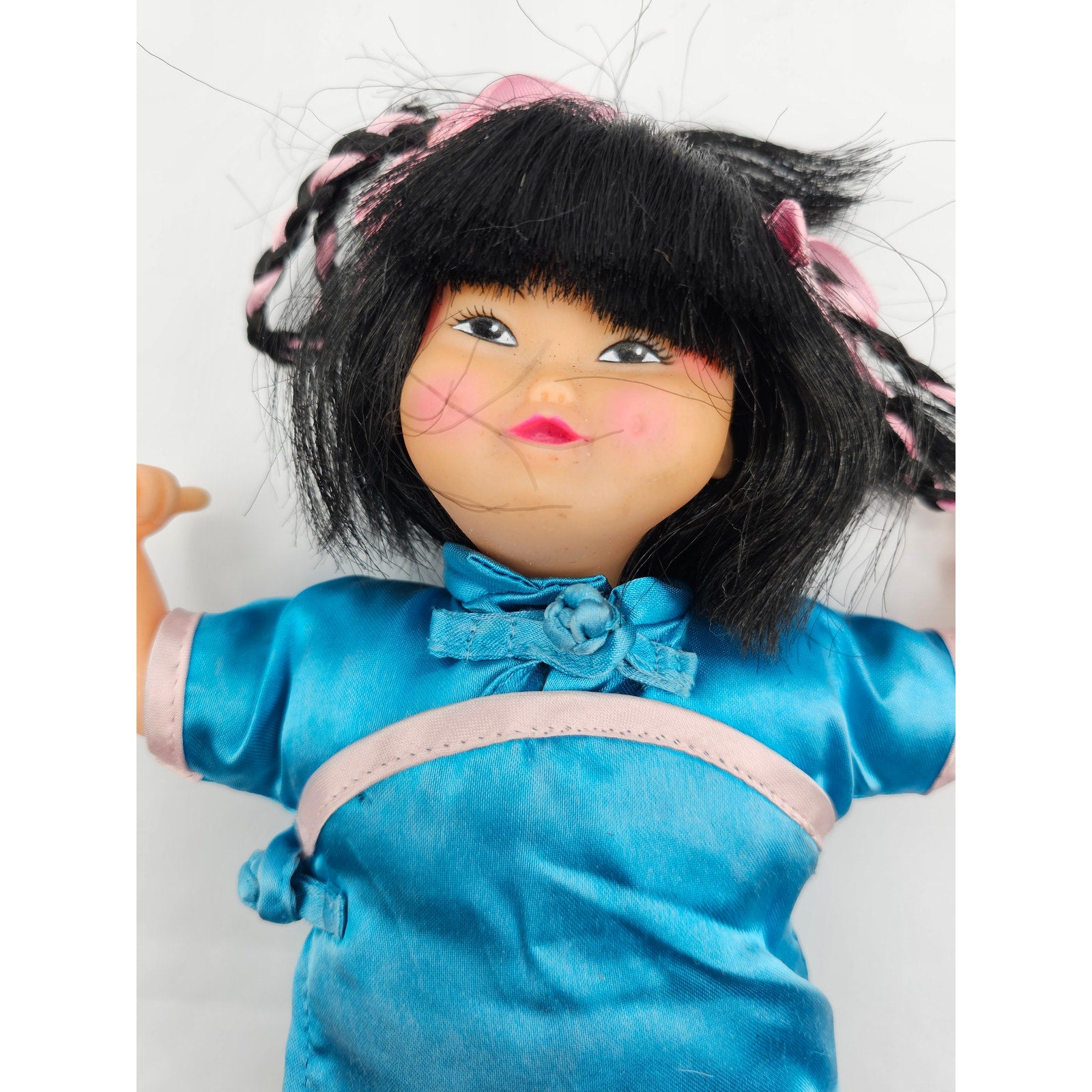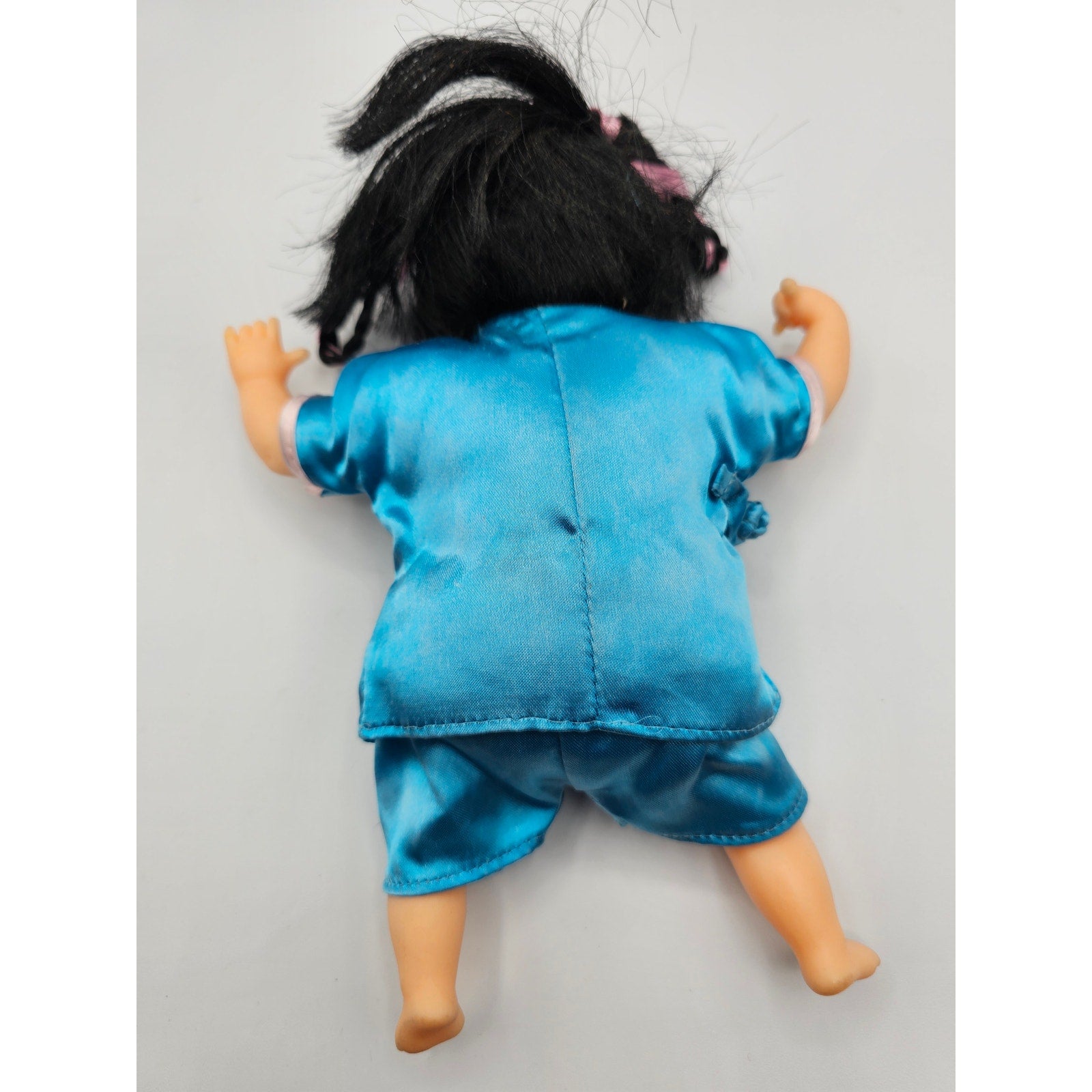Vtg 1985 Goodwell International Soft Body Asian Girl Blue Satin Pajama Outfit