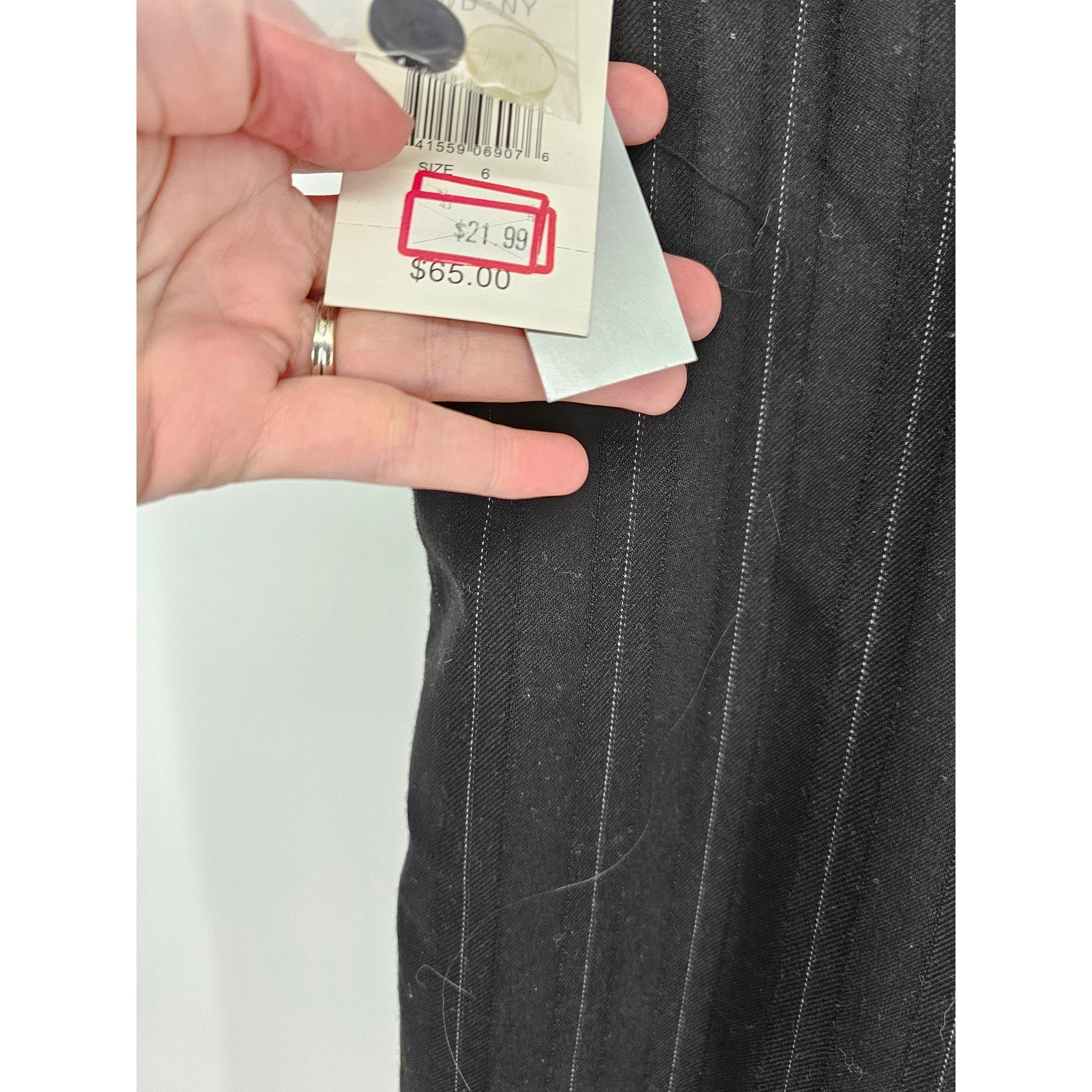 WD NY Womens Sz 6 High Waist Straight Leg Pinstripe Dress Pants Black NEW
