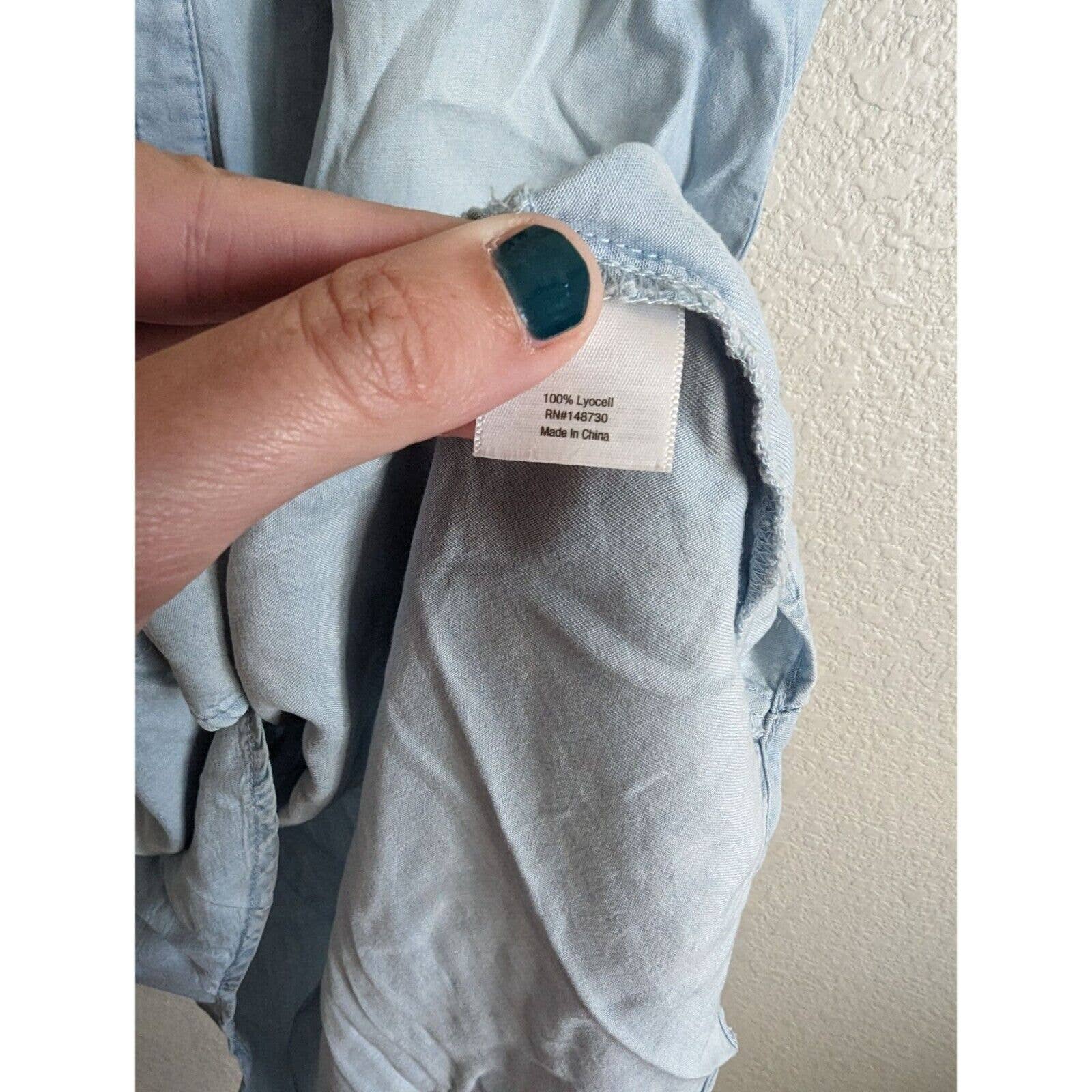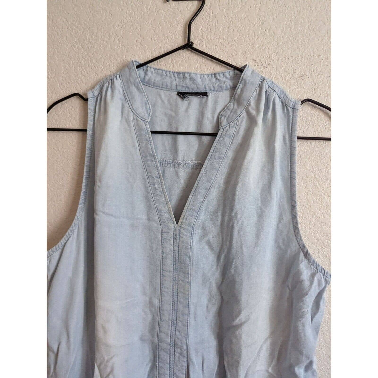 Womens Sz M Knee Length Chambray Shift Dress Sleeveless