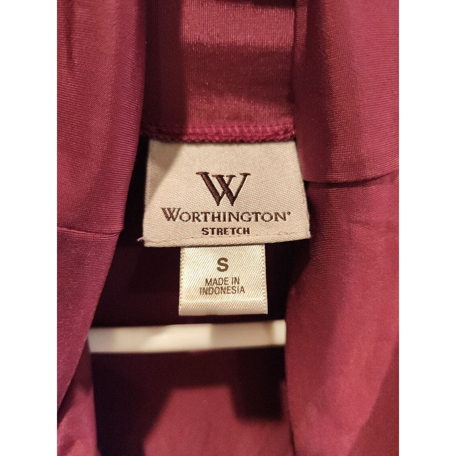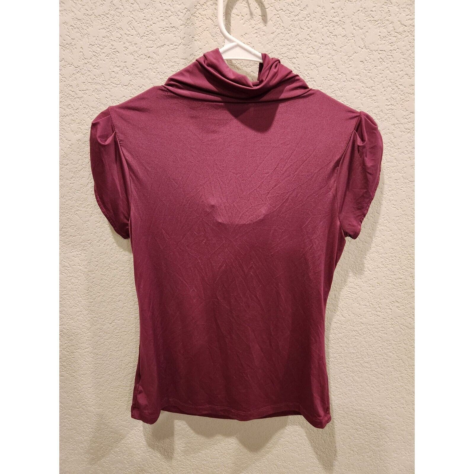 Worthington Womens Sz S Cowl Neck Short Sleeve Blouse Maroon Shiny