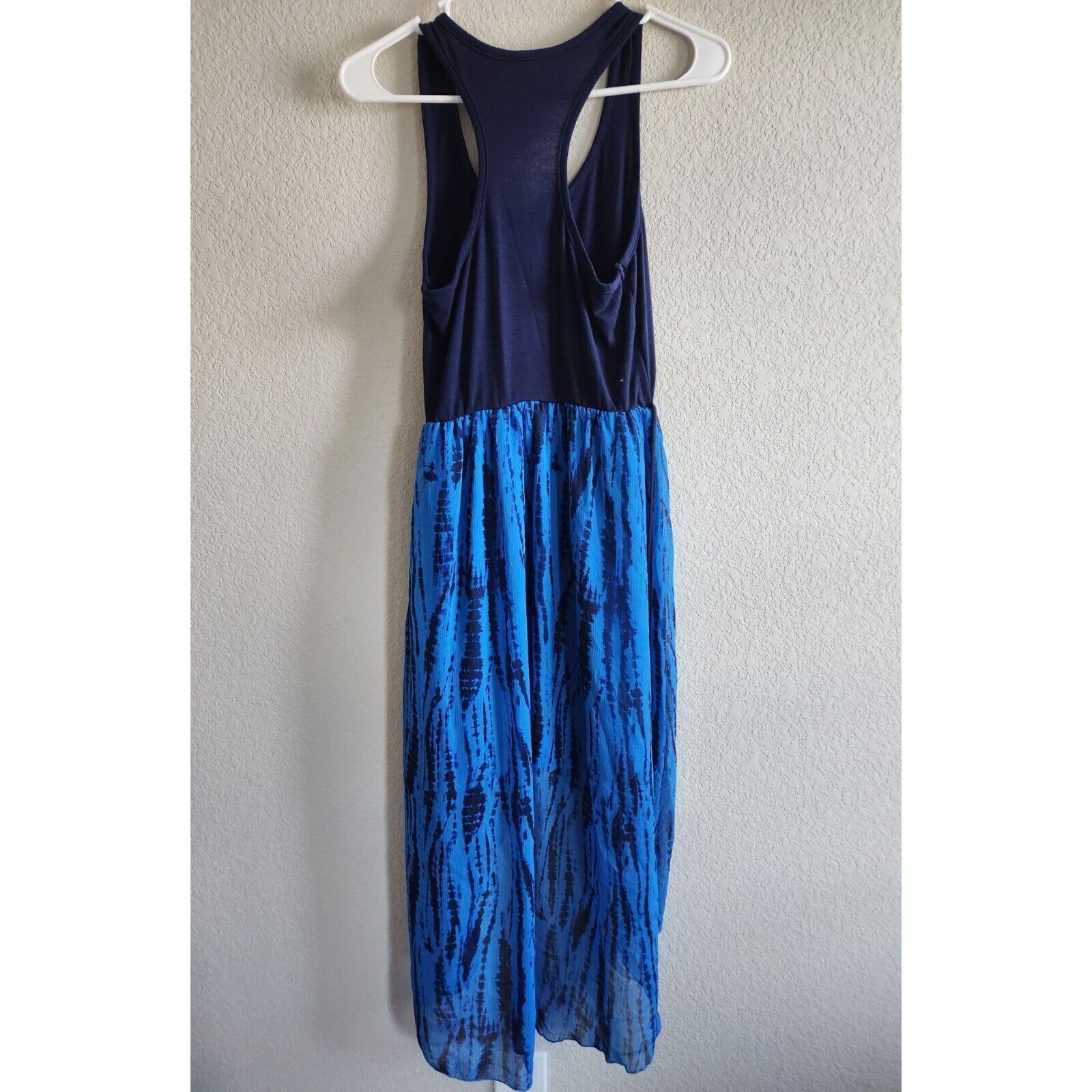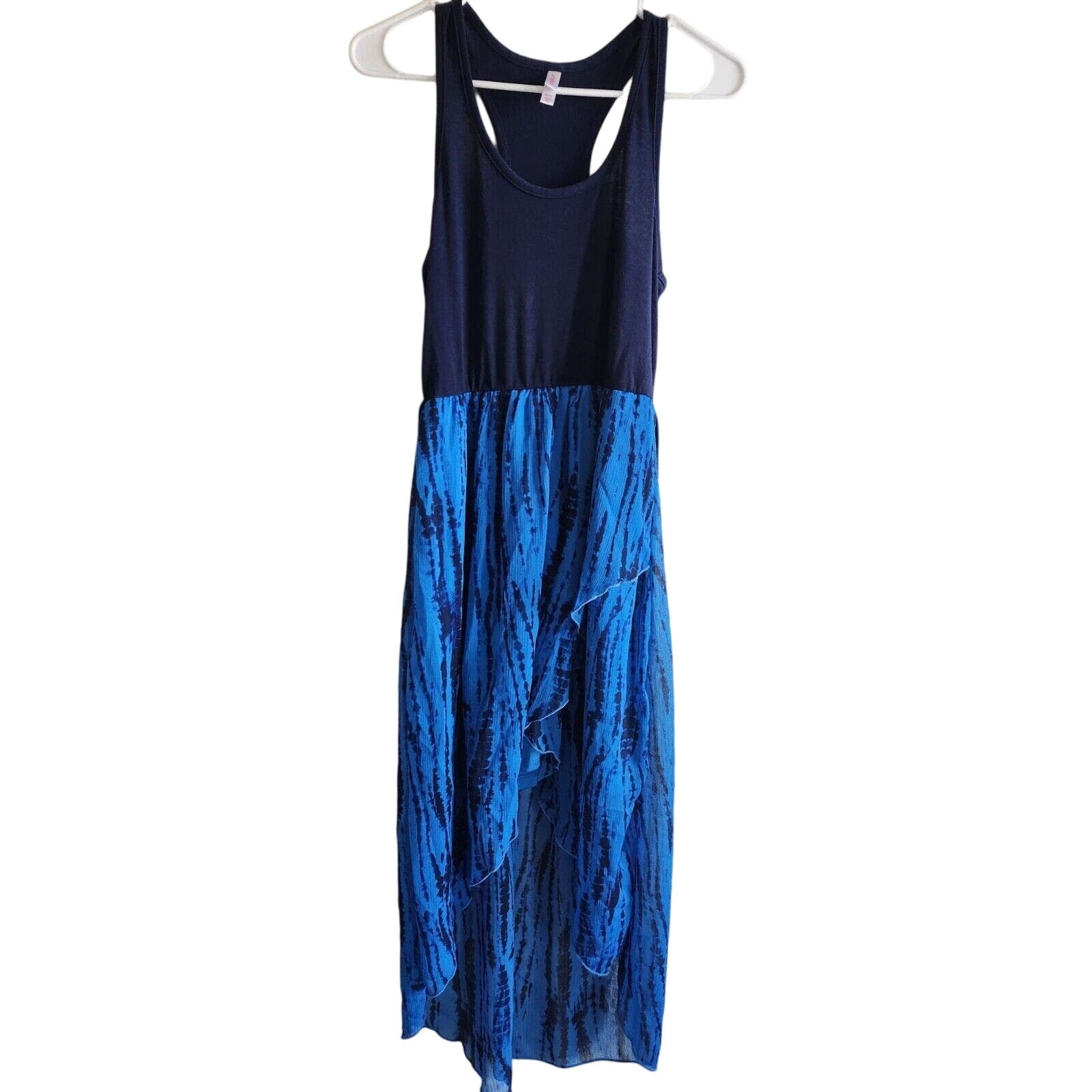 Xhiliration Womens Sz M High Low Maxi Dress Blue Sleeveless Tiedye
