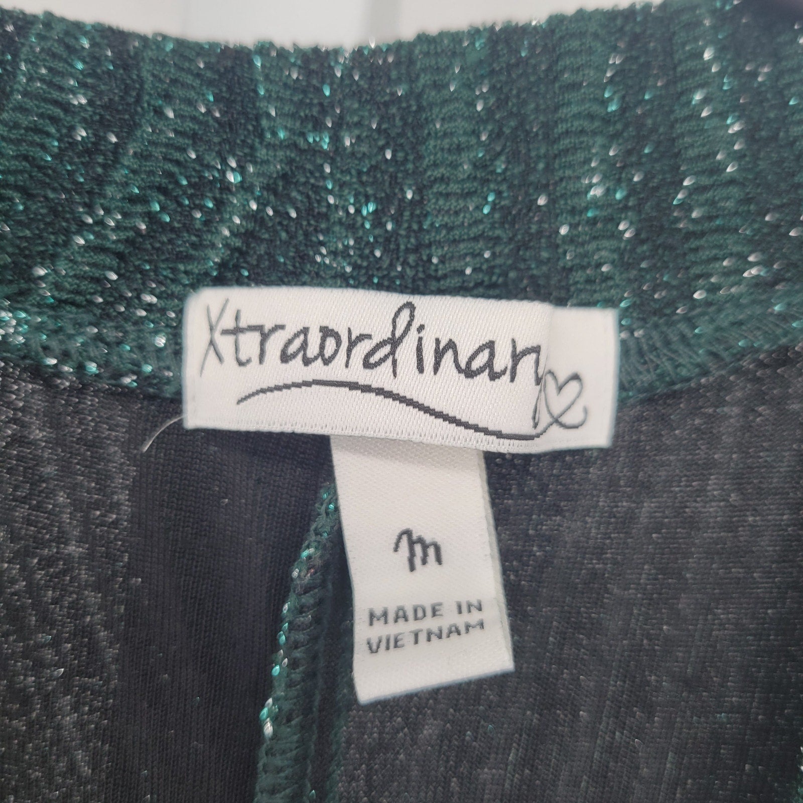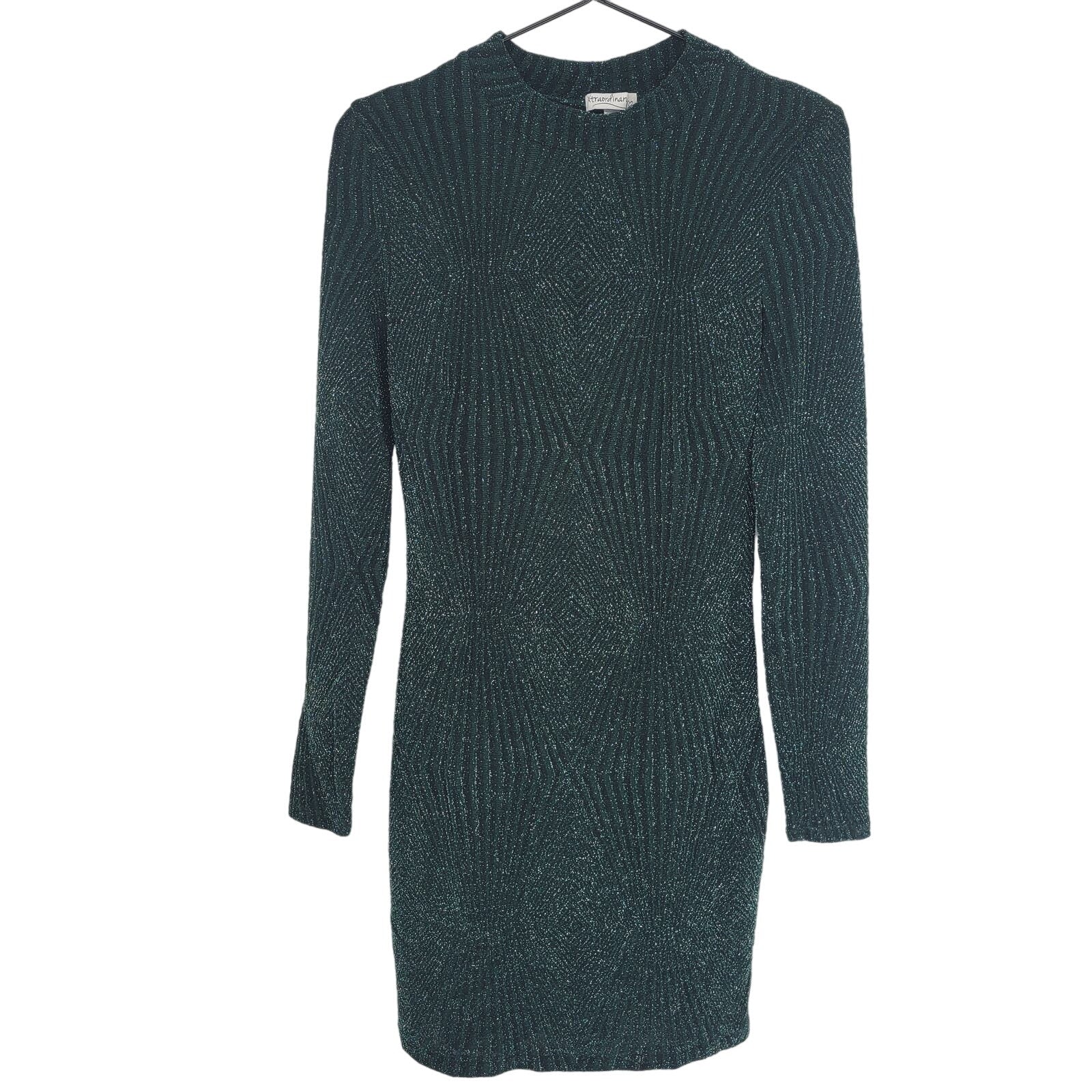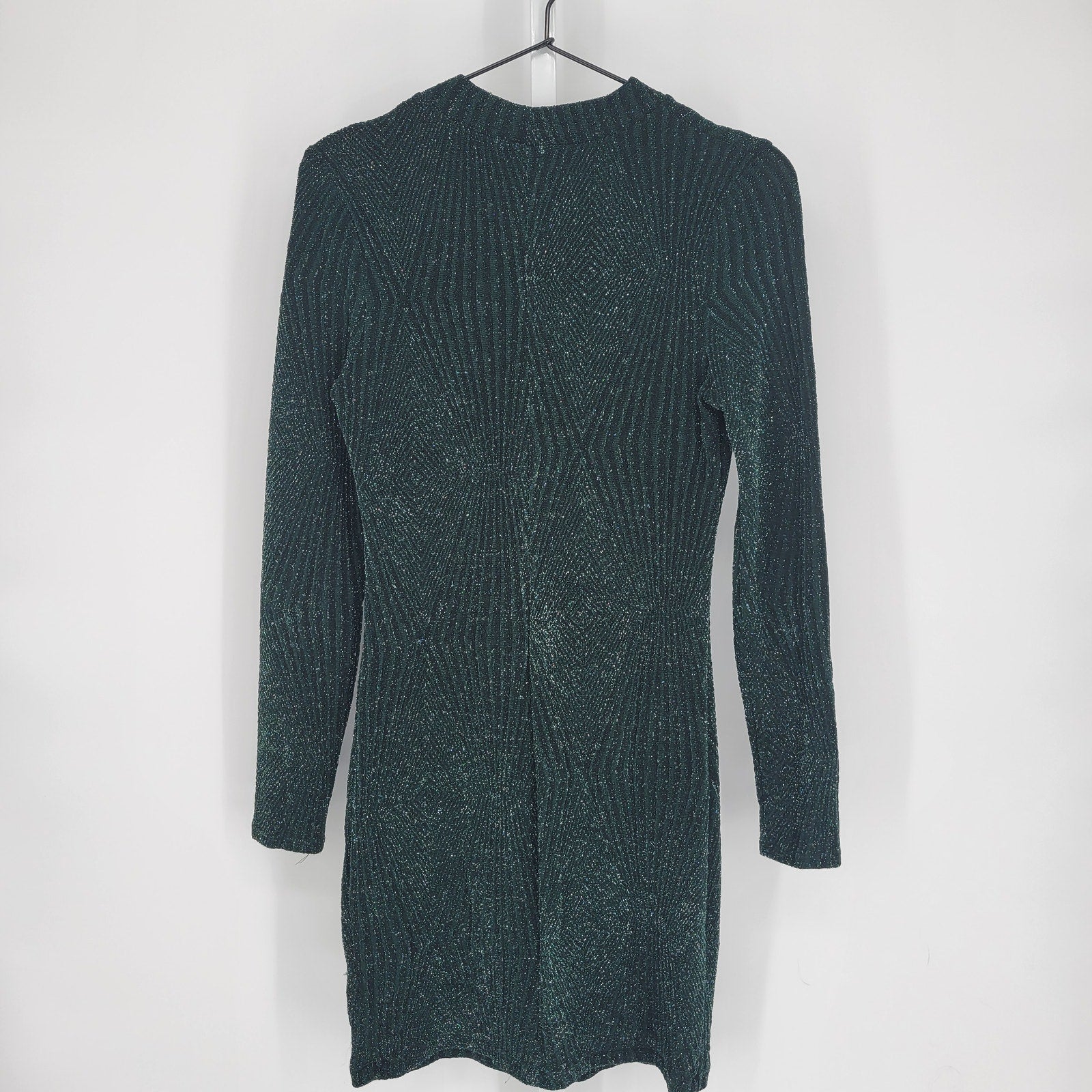 Xtraordinary Womens Sz M Long Sleeve Sweater Dress Emerald Green Metallic Weave