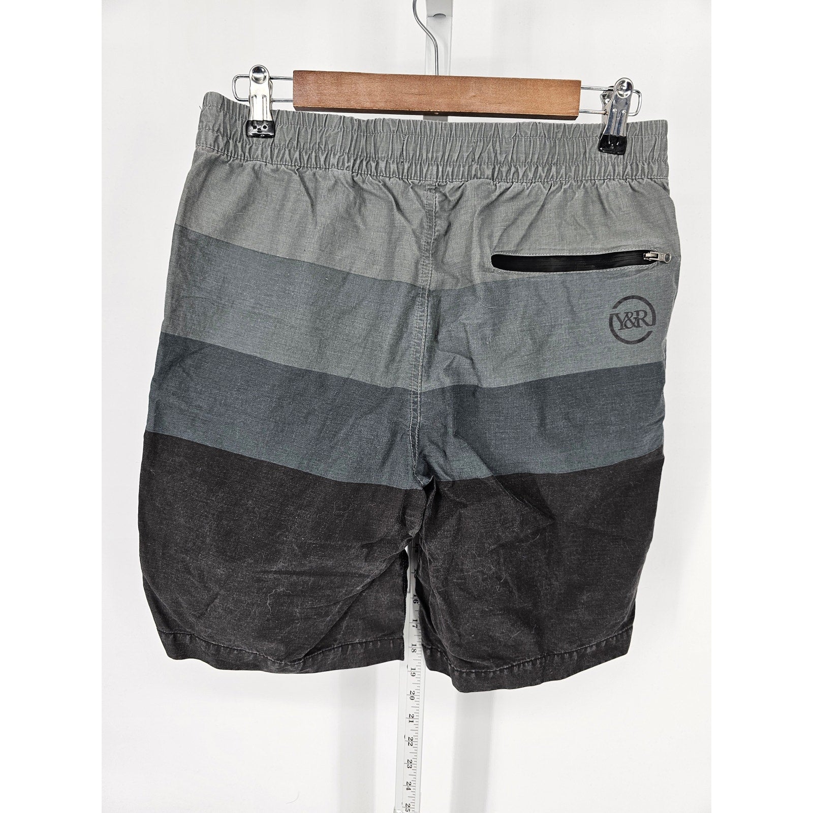 Young & Reckless Mens Sz S Swim Trunks Swimsuit Gray Striped