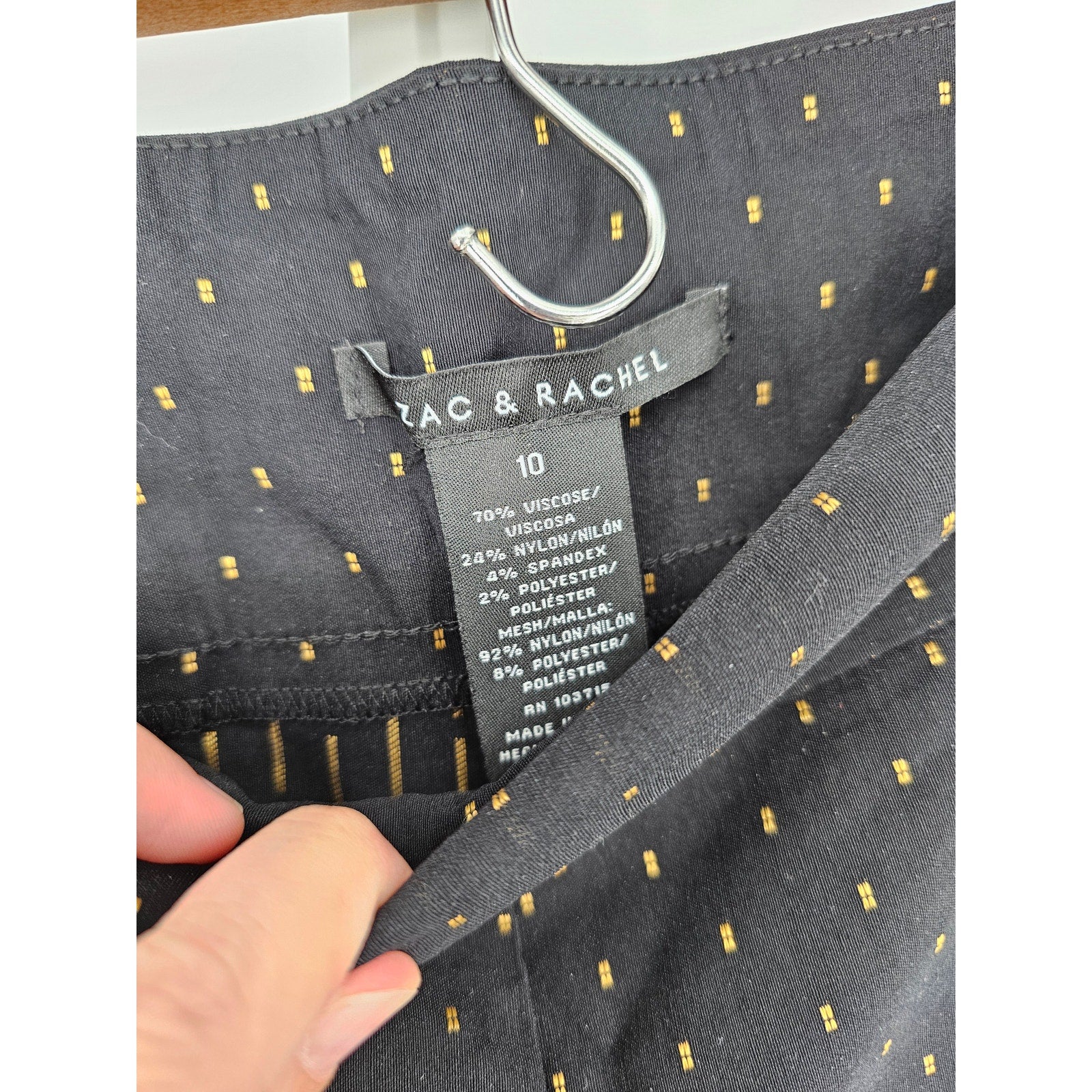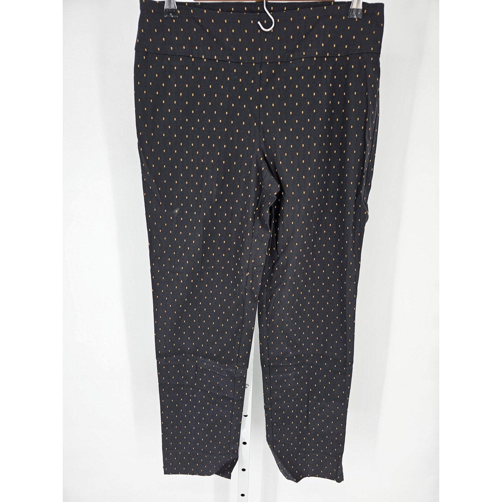 Zac & Rachel Womens Sz 10 Pull On Sim Leg Dress Pants Black Gold Dots