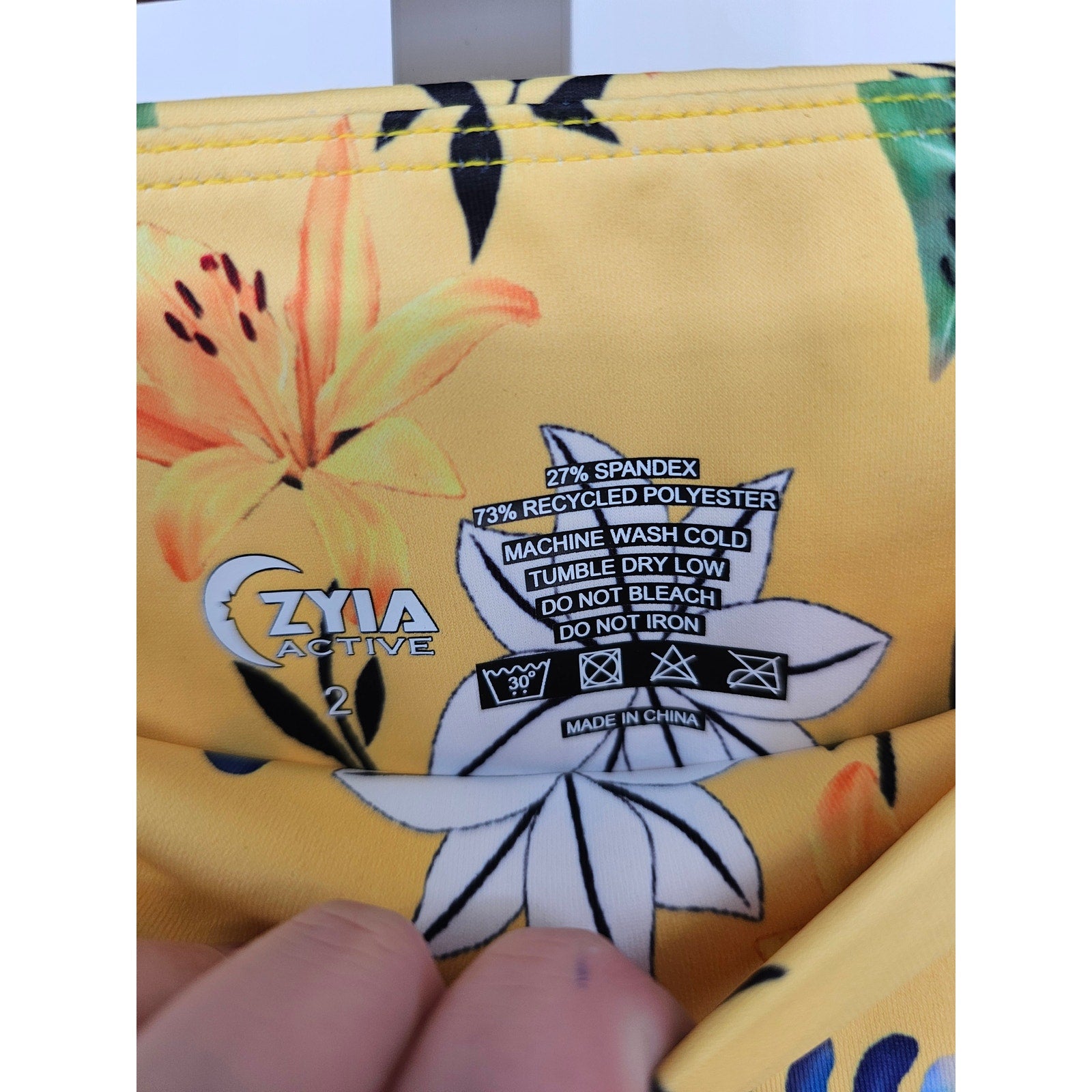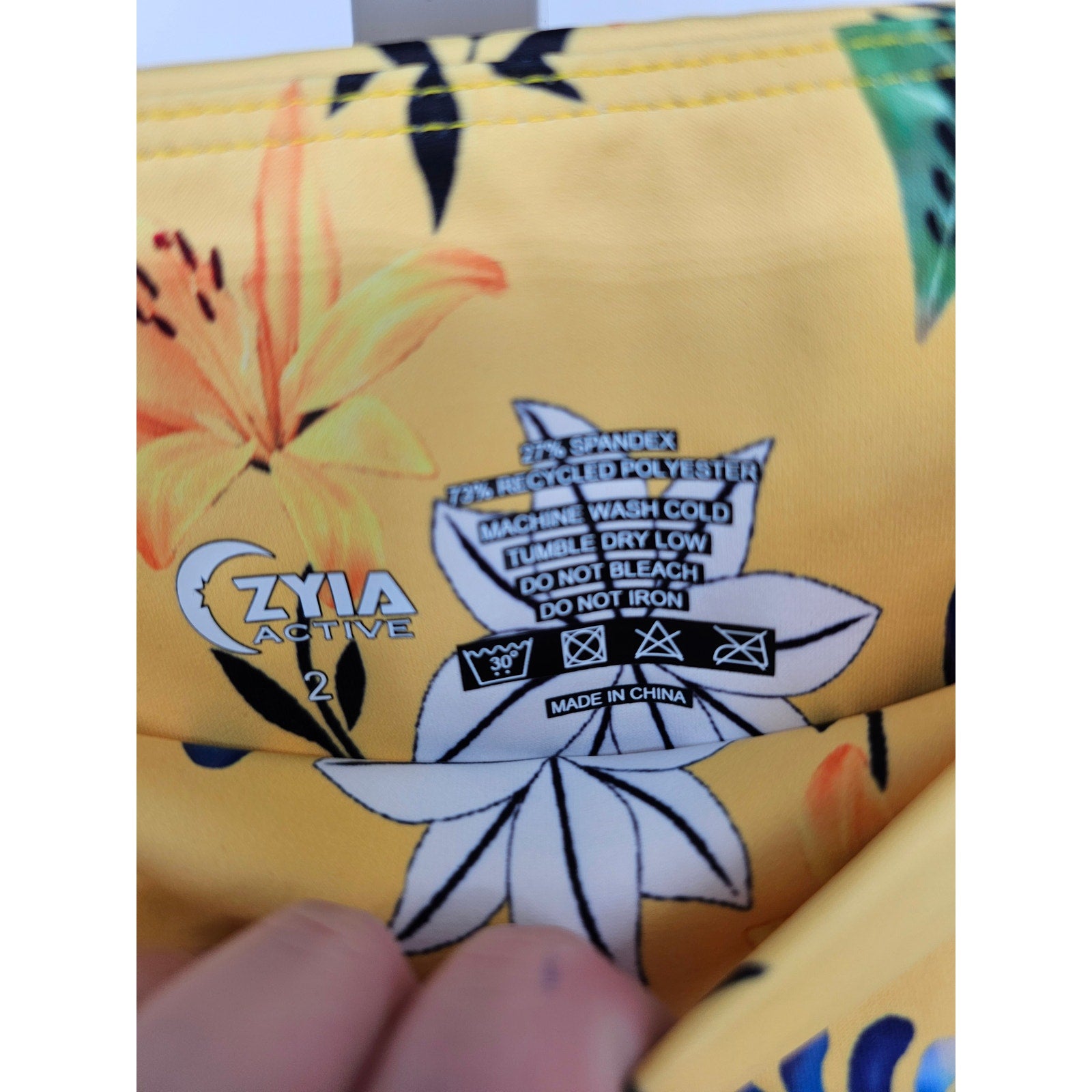 Zyia Active Womens Sz 2 Full Length Athletic Leggings Bright Yellow Floral